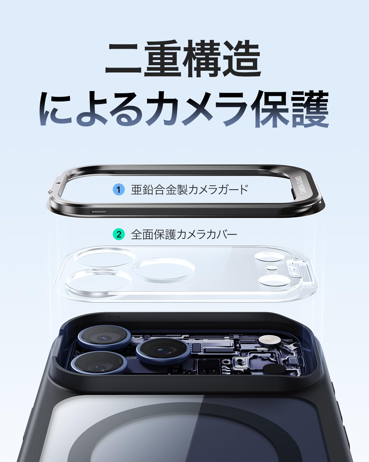 ■ 【レンズダブル保護!美しさと強さの両立】カメラレンズはスマホの命です!このiPhone 17 Pro ケースはレンズ全体を覆うフルカバーと、カメラフレームを囲う丈夫な亜鉛合金製スタンドの二段構えで、傷や衝撃から徹底的に保護します。