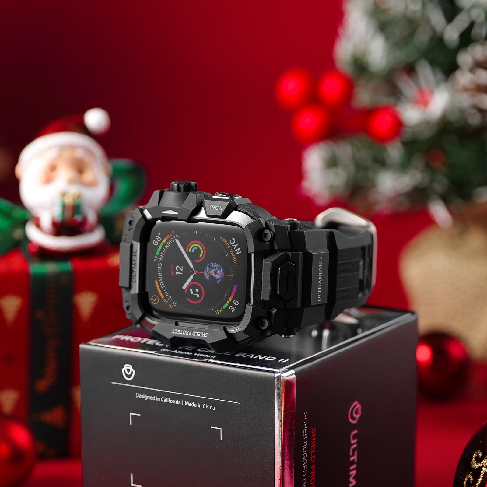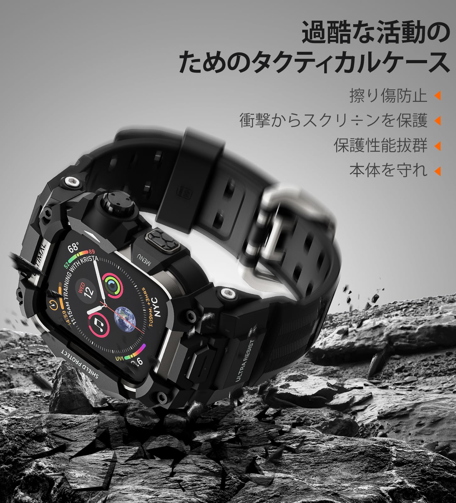 ULTIMAL コンパチブル Apple Watch バンド アップル ウォッチ バンド ケース 一体型 TPU/TPE 耐衝撃 滑り止め 耐久性 落下防止 (ブラック・ブラック, 44mm)