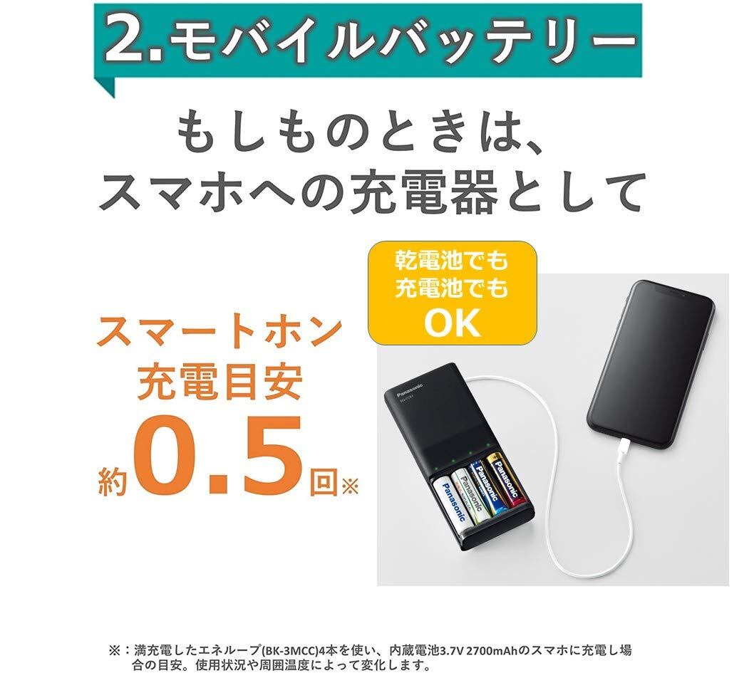 充電池はもちろん、乾電池でもスマホへ給電可能。