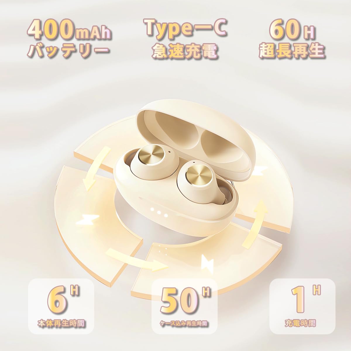 ■ 【本体4時間&ケース込み50時間超長再生】本体と充電ケースのバッテリーをアップグレード、より長く使えるようになり、コンパクトなデザインにもかかわらず、イヤホン本体のみで約4時間連続再生でき、400mAhの充電ケース込みで最大約50時間以上超長再生、出張や作業中でもバッテリー切れが起こりにくく安心して使えます。