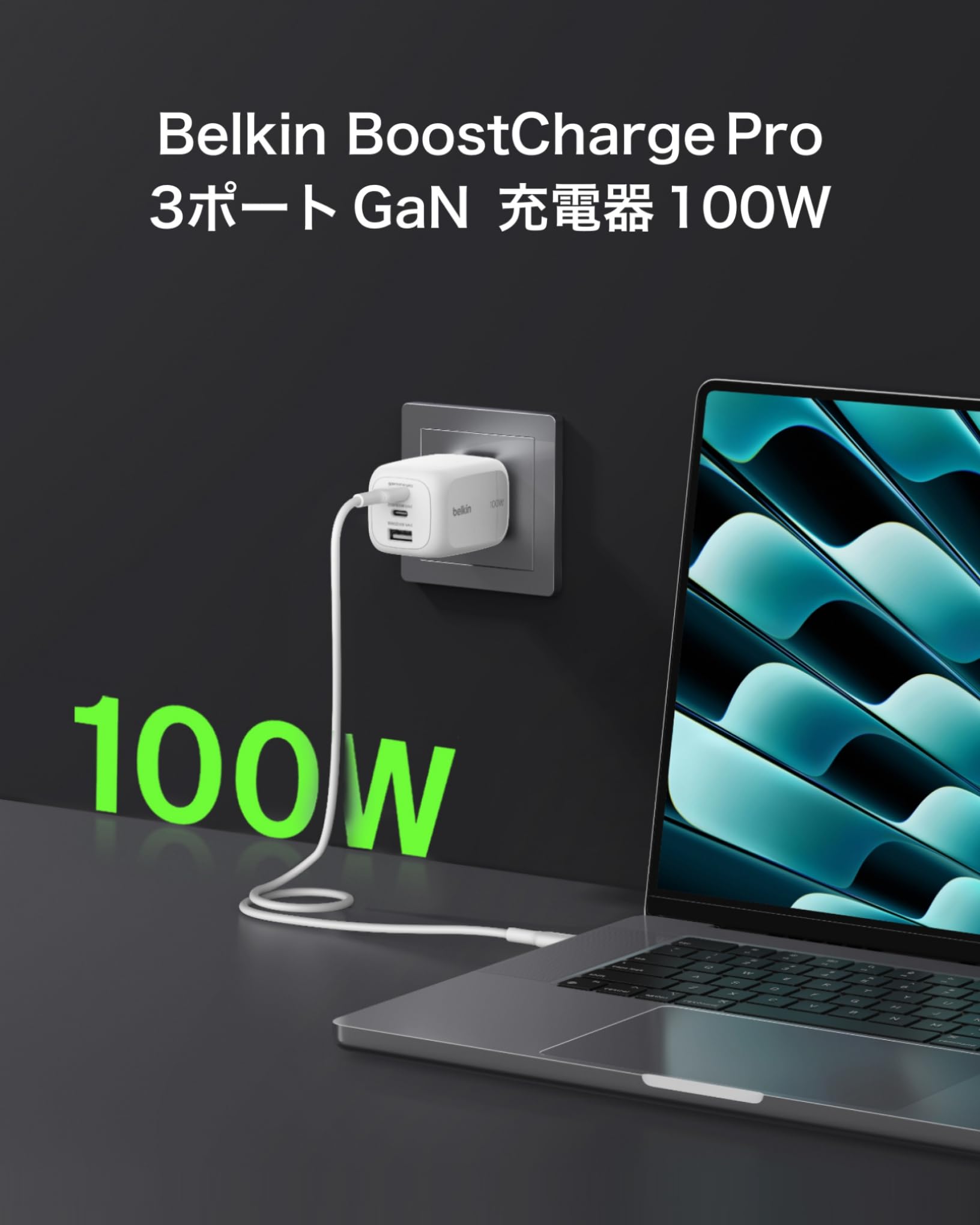 最新のGaN技術を活用し、Mak Book AirとPro 13及び14インチに最適な急速充電をサポート。