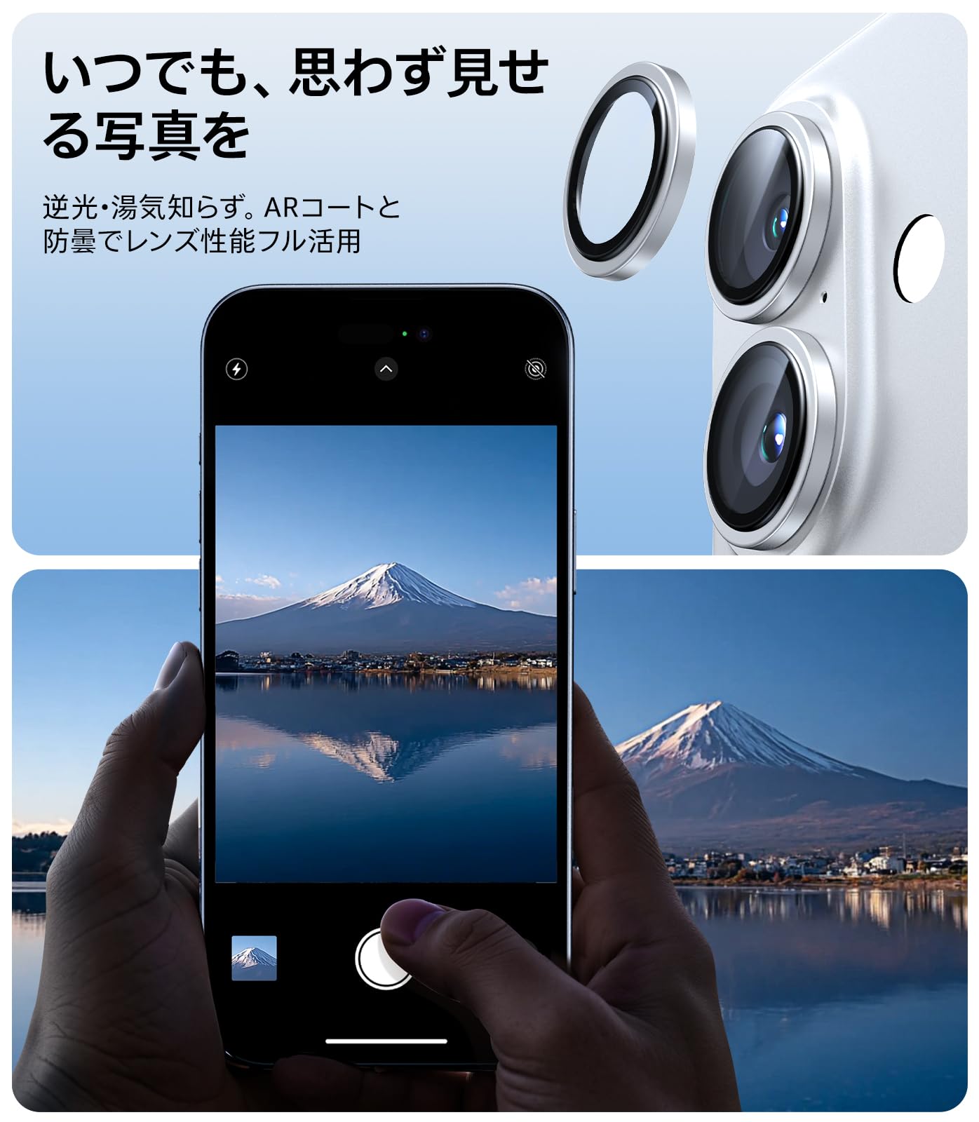 TORRASのカメラ保護は、最新のAR反射防止技術と超透明液晶フィルム技術を融合し、光の透過率(99.2%)を極限まで高め、iPhone 本来の描写力を引き出す。