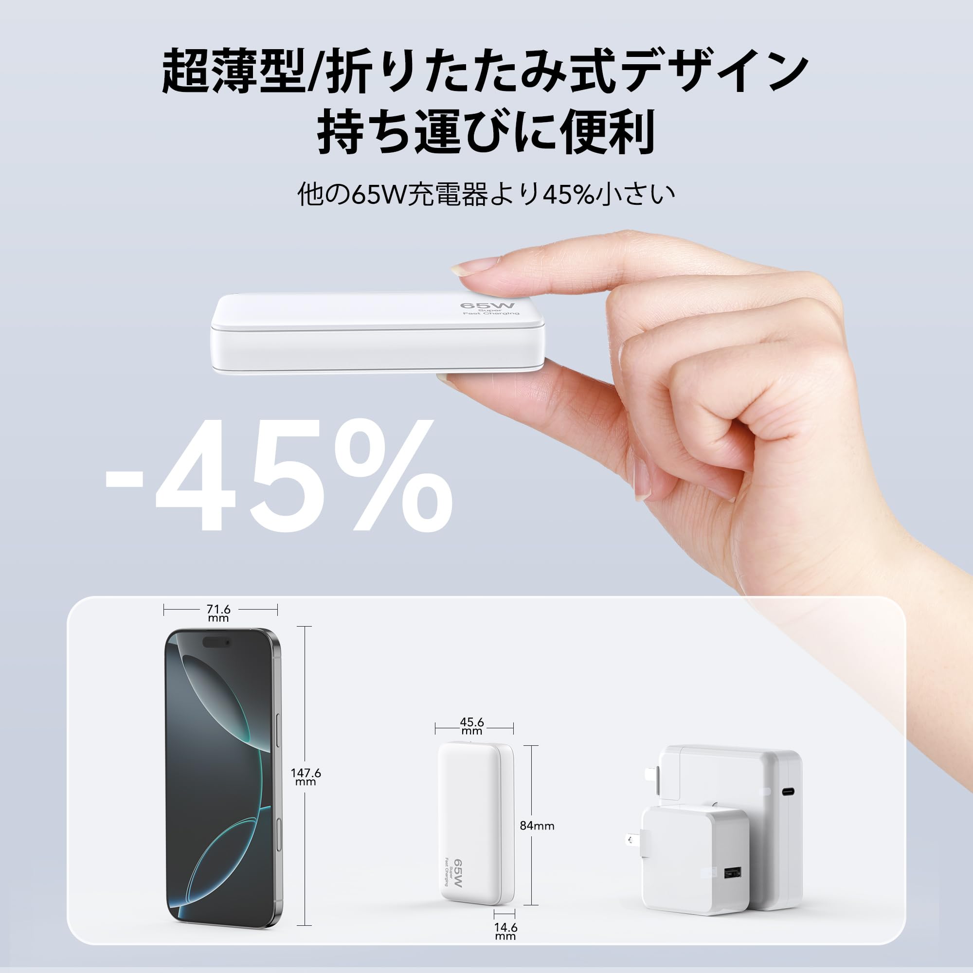 ■ 【折りたたみ式急速充電器】: 驚くほどコンパクトなサイズで携帯性が向上しています。