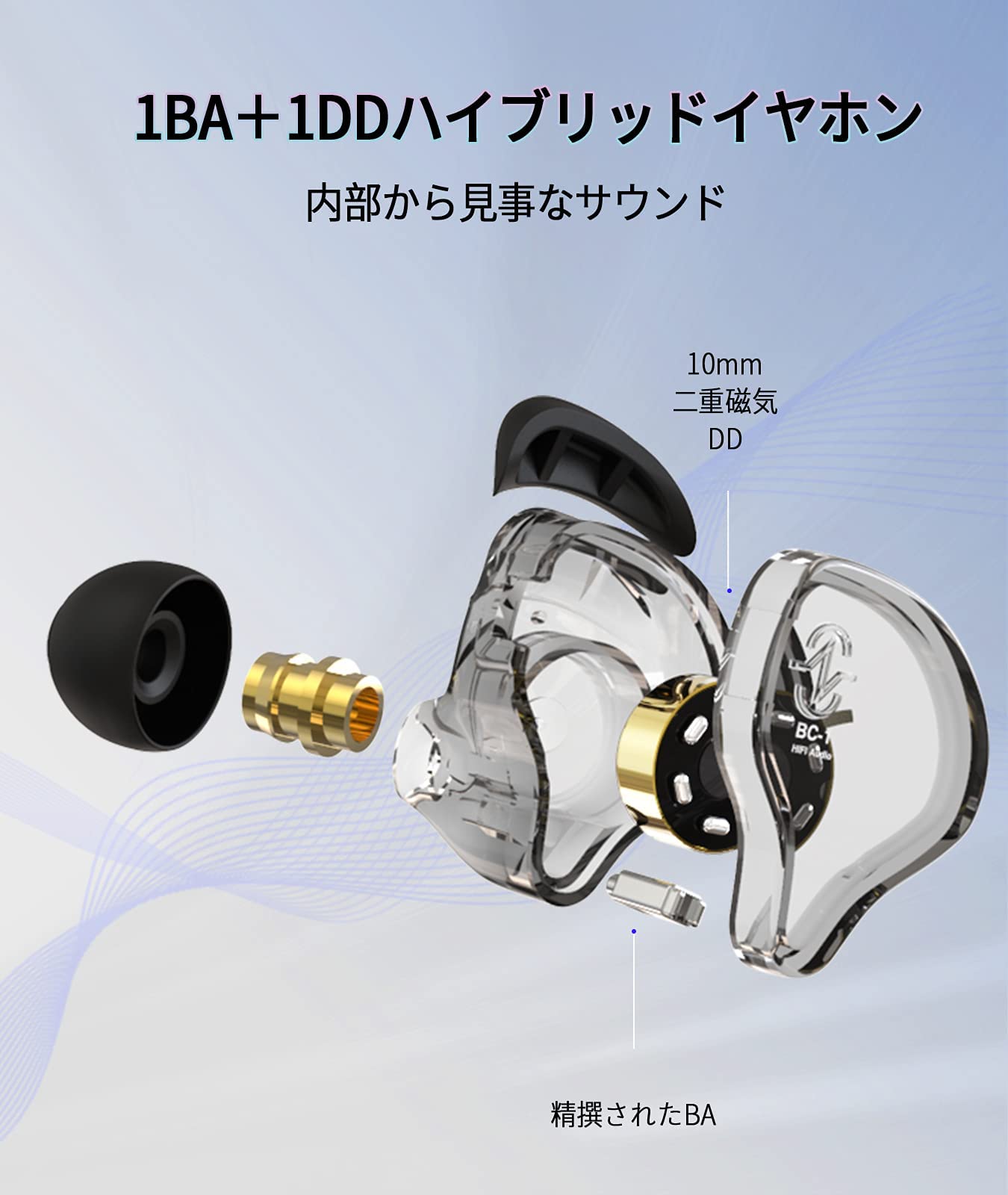 ■ 【高音質有線イヤホン】有線イヤホンCCZ Melodyは1DD+1BA ハイブリッドを採用されたカナル型イヤホン。