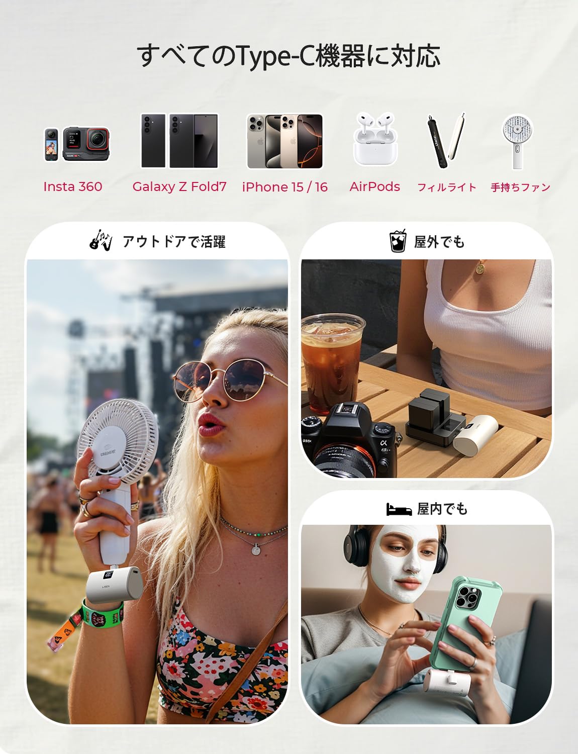 7000mAhの頼れる相棒は、旅行やフェスのプレゼントにも最適です。