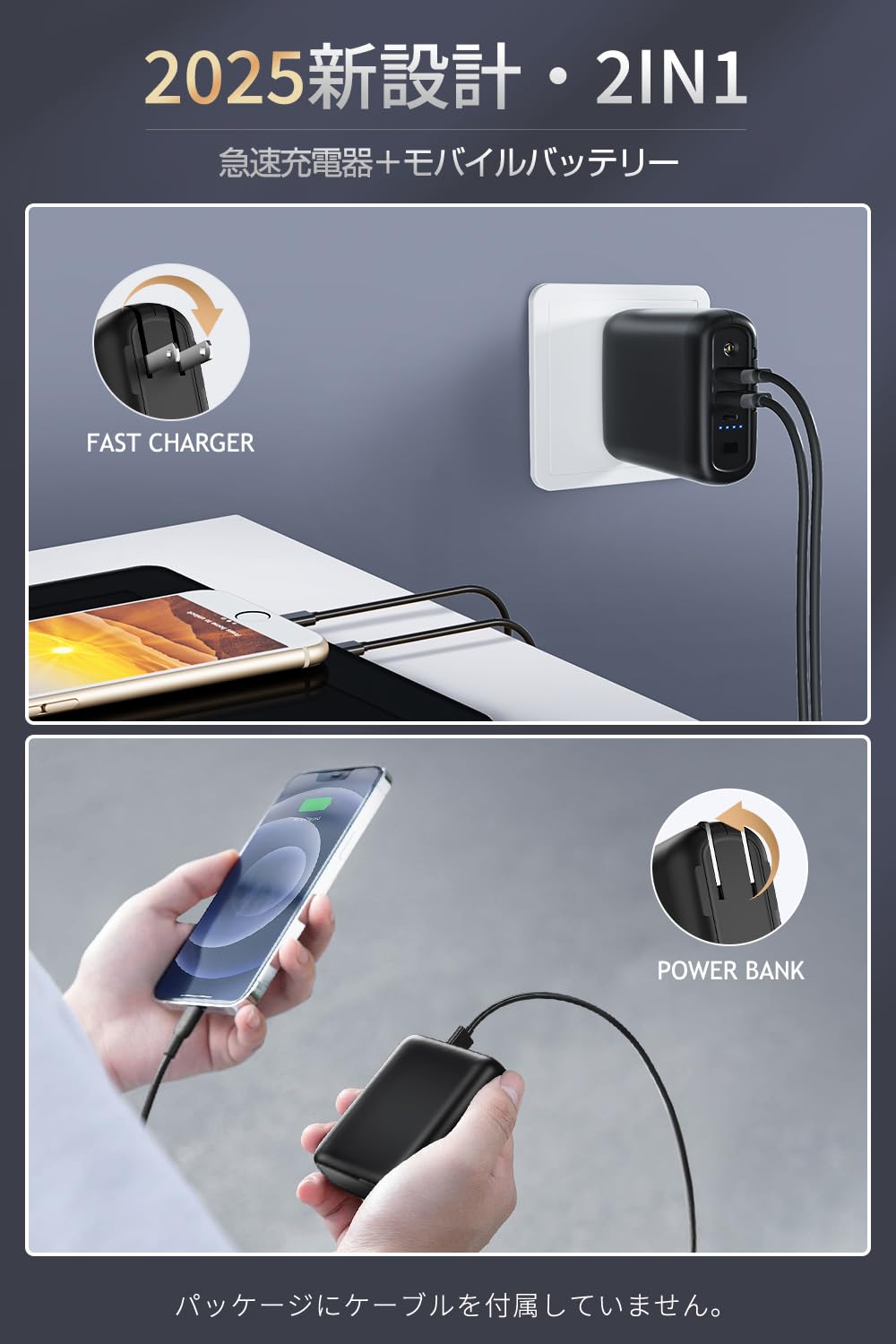 ■ 【コンセント一体型PSE認証済】従来のモバイルバッテリー 、充電器は単機能で、本製品はACアダプタ搭載で、モバイルバッテリーと急速充電器の2役をこなせるのが最大の魅力といえるでしょう。