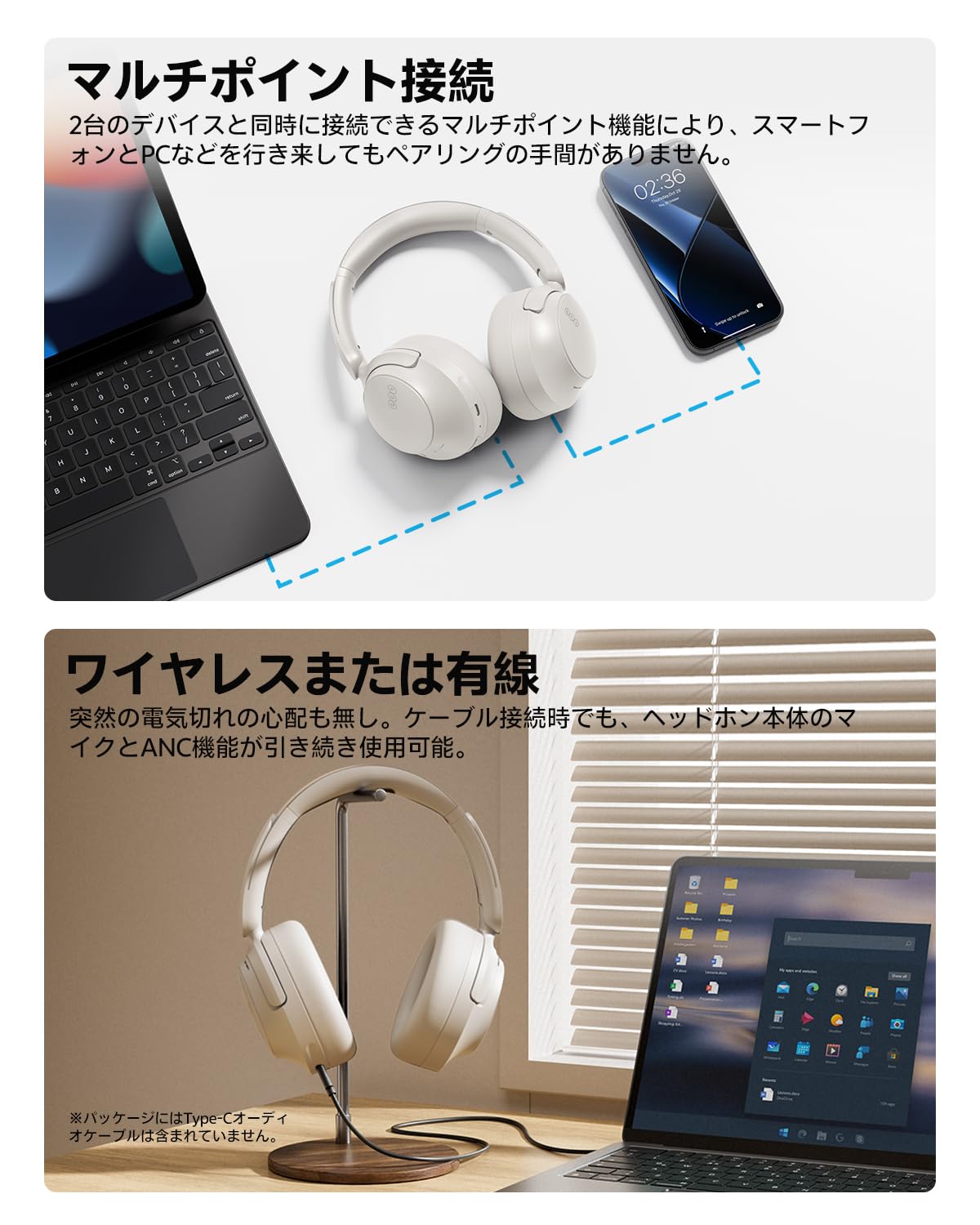 * 【快適な装着感&マルチポイント接続対応】頭を優しく包み込むソフトなヘッドパッドと、肌触りの良いイヤーパッドを採用し、長時間のリスニングでも快適さをキープ。圧迫感を感じにくく、映画鑑賞やゲーム、テレワークなど、どんなシーンでも快適に使用できます。また、2台のデバイスを同時に接続できるマルチポイント機能に対応。PCでのWEB会議中でも、スマートフォンでの着信を逃さずスムーズに切り替え可能です。【認証取得済み】電波法技適認証番号:219-258206