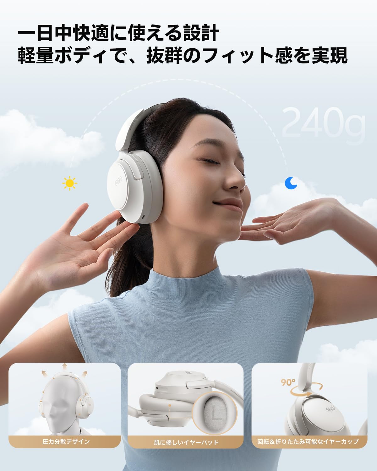 【VGP2026 受賞】QCY H3S ヘッドホン ワイヤレスヘッドホン Bluetooth6.0 ノイズキャンセリング 有線/無線ハイレゾ 56dBノイズキャンセリング 360°空間オーディオ 最大102時間連続再生 外音取り込み クリアな通話 マルチポイント対応 快適装着 専用アプリ対応 ホワイト