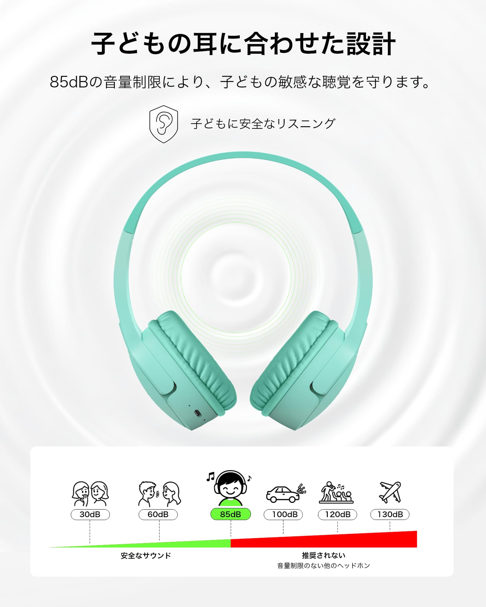 * 【移動中も子どもを飽きさせない】Belkinの子ども用ヘッドフォンは電車、新幹線、飛行機などの移動中や公共機関など音を出せない環境でも、ヘッドフォンで周りに迷惑をかけずにゲームや動画を楽しめます。在宅勤務中などゲームや動画の音が気になる環境にもおすすめ。お子様の退屈な時間を無くし、飽きさせません。推奨年齢:3歳以上、サイズ調整可能(左右各4cmづつ)。