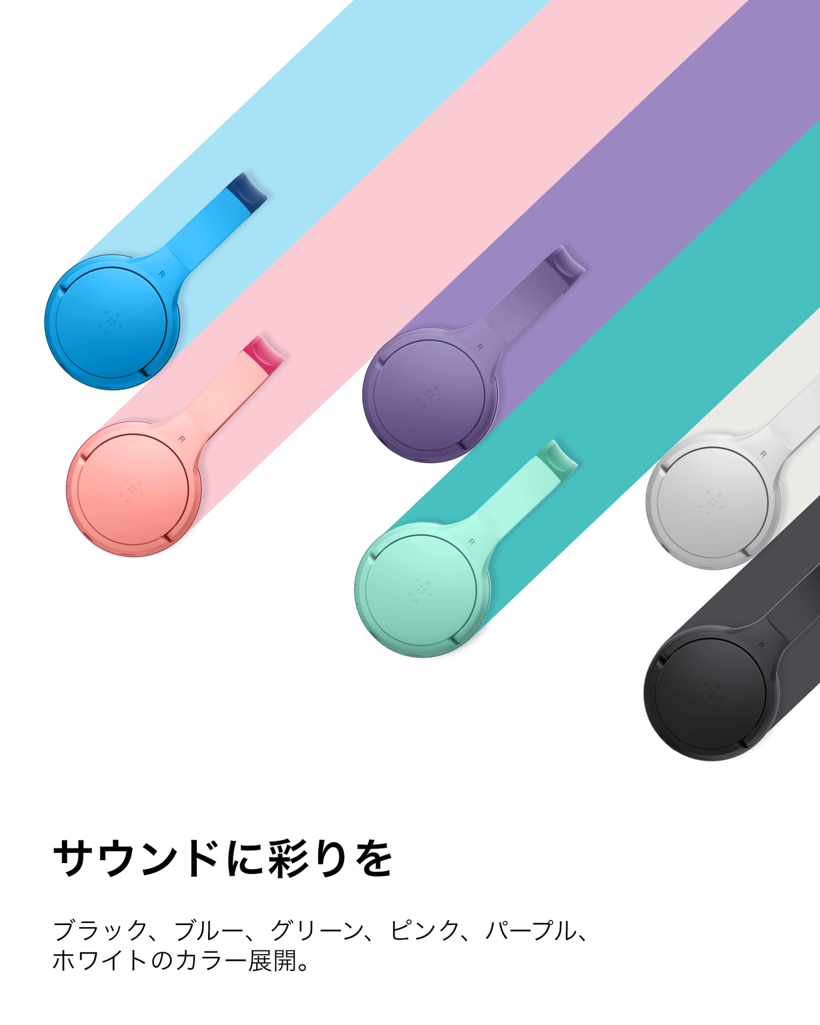 Belkin 子供用 ワイヤレスヘッドフォン ヘッドセット 通話マイク搭載 音量制限機能 ボイスチャット マイク付き 最大30時間連続再生 Bluetooth5.0 防水対応 有線接続にも対応(3.5mmオーディオケーブル付属) USB-Cモデル SOUNDFORM Mini パープル AUD002fqPUV3