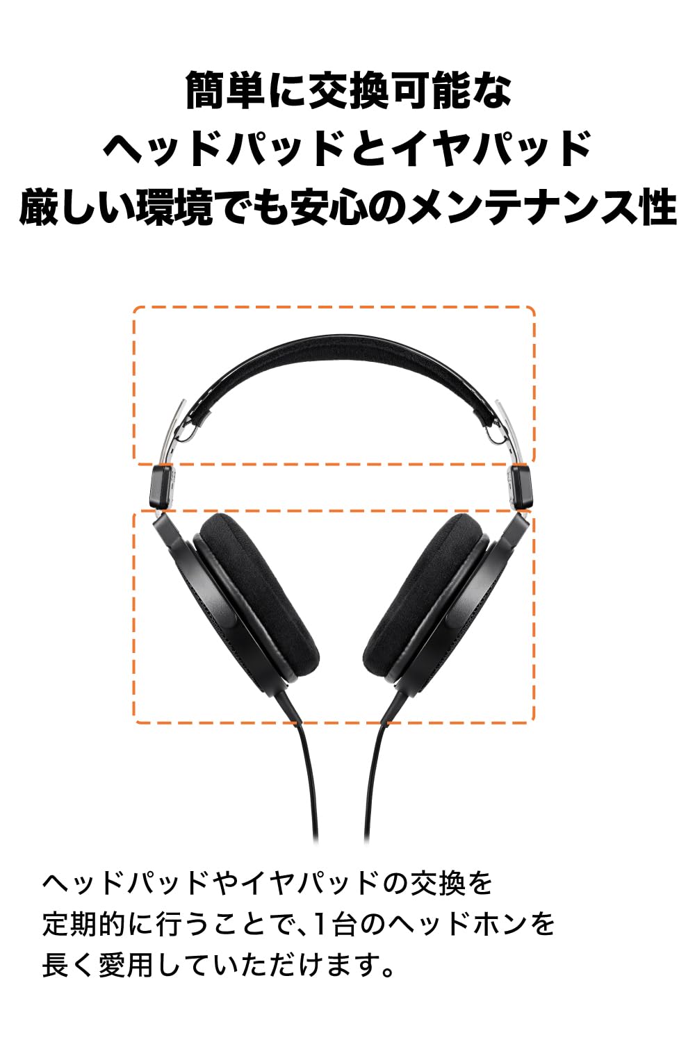 * 確実なフィット感と柔軟性を両立する調整可能なヘッドバンド:ヘッドホンの重量を均等に分散させるヘッドバンドは長時間着けていても疲れにくく、柔らかいベロア素材のイヤパッドと通気性のあるオープンバックデザインの組み合わせにより、いつでも快適なモニタリングが可能です。また、イヤパッドとヘッドバンドは交換可能な為、長く愛用いただけます。