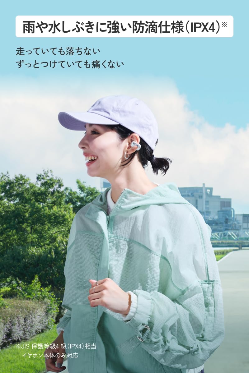 * 【雨や水しぶきに強い防滴仕様(IPX4)※】 日常生活の中での様々なシーン、天候急変時やエクササイズやジョギング、移動中など、雨や水しぶきが飛んでも使用可能なIPX4相当の防滴仕様を備えています。※JIS 保護等級4 級(IPX4)相当。イヤホン本体のみ対応。