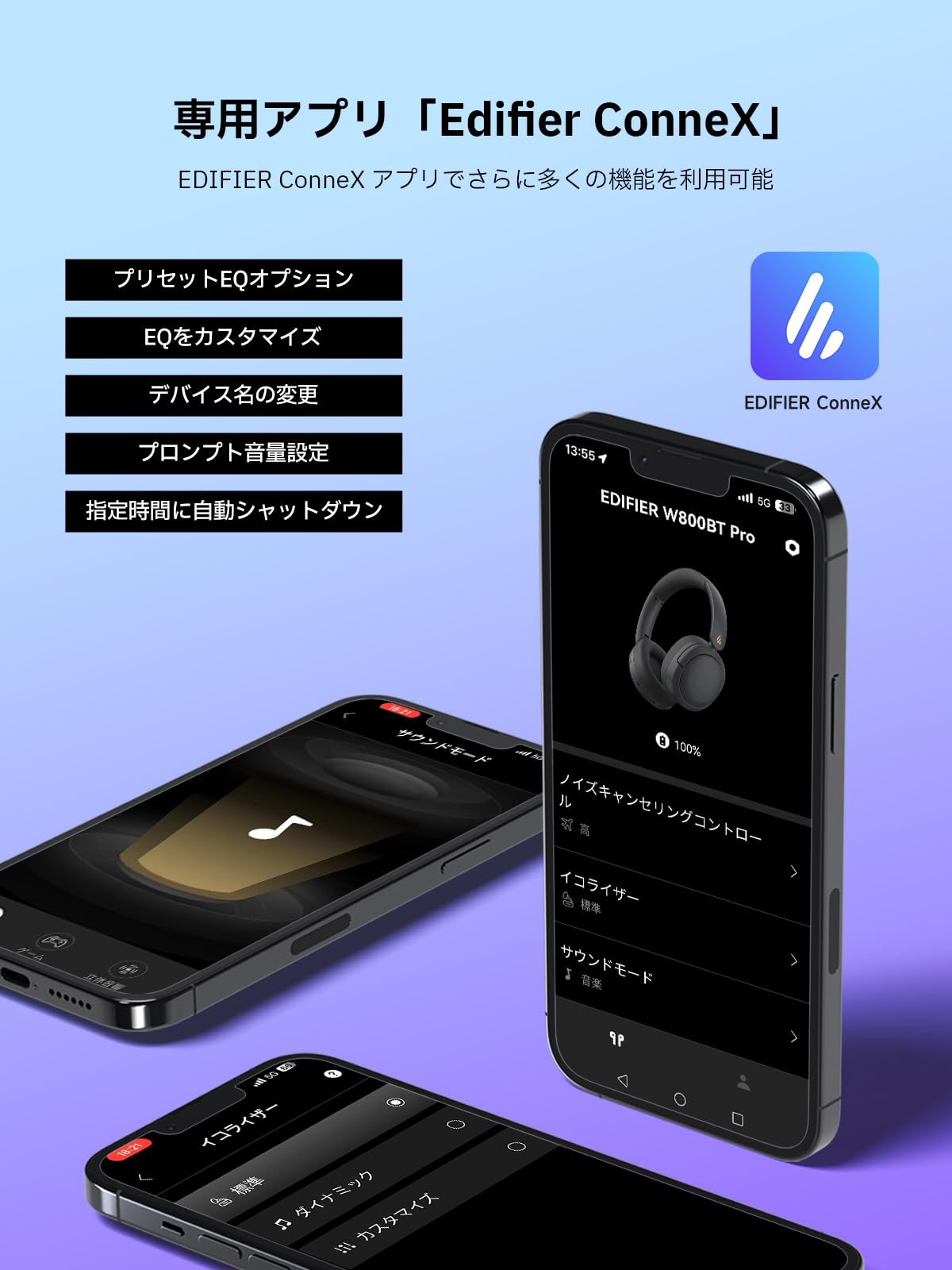 * 【専用アプリ対応】EDIFIER ConneX専用アプリでさらに多くの機能を利用可能。