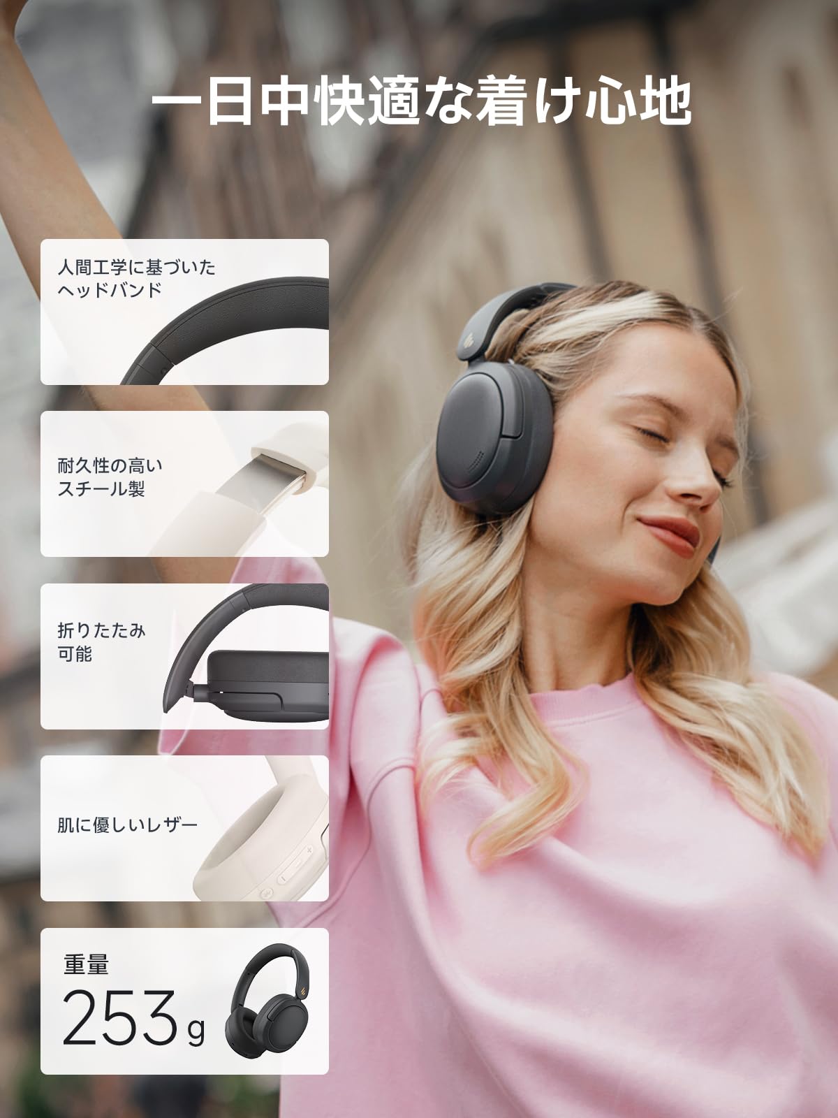 * 【一日中快適な着け心地】新設計の多方向適応構造は、あらゆる顔の形や耳の輪郭に完璧にフィットし、軽量で圧迫感の少ないヘッドバンドとソフトなイヤークッションを組み合わせることで、驚くほど快適な装着感を実現します。完全に折りたたみ可能なデザインで、持ち運びが簡単で旅行にも適しています。