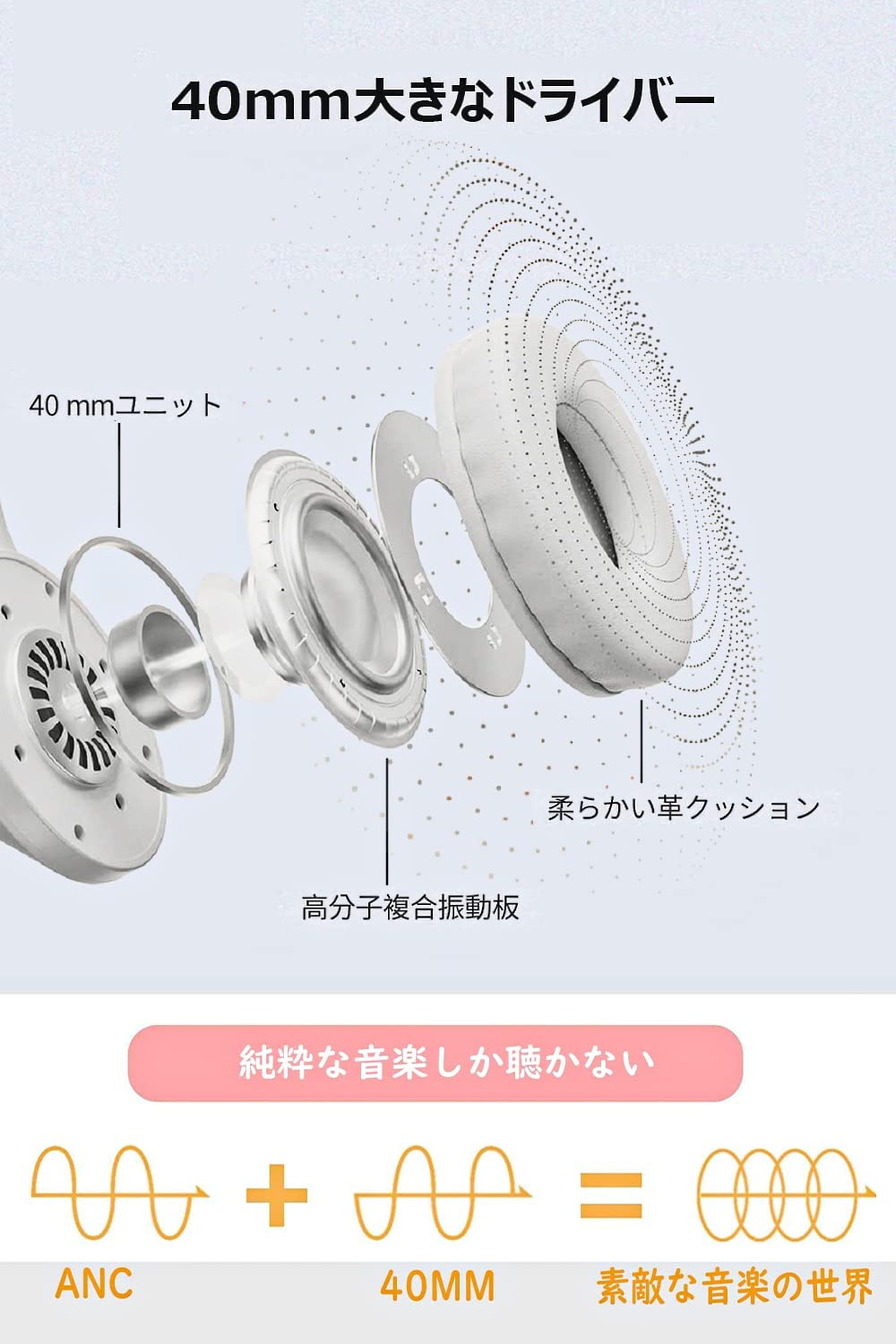 * 【Hi-Fi 高音質・低遅延&大口径40mm】強力な40mmステレオドライバーと先端のブルートゥース5.3チップと共に、接続遅延は最短0.1秒までになっている、低音から高音までバランス良く出ていて, 貴方に深みのあるハイファイ低音と澄みきった高音を提供します。 大きなイヤーマフデザイン、防音効果を高め、騒がしい環境でも静かにクリアな音質を楽しむことができます。音楽を聴くことに、ビデオを見ることに、web電話会議をすることに、電話をかけることに一番適用されます。