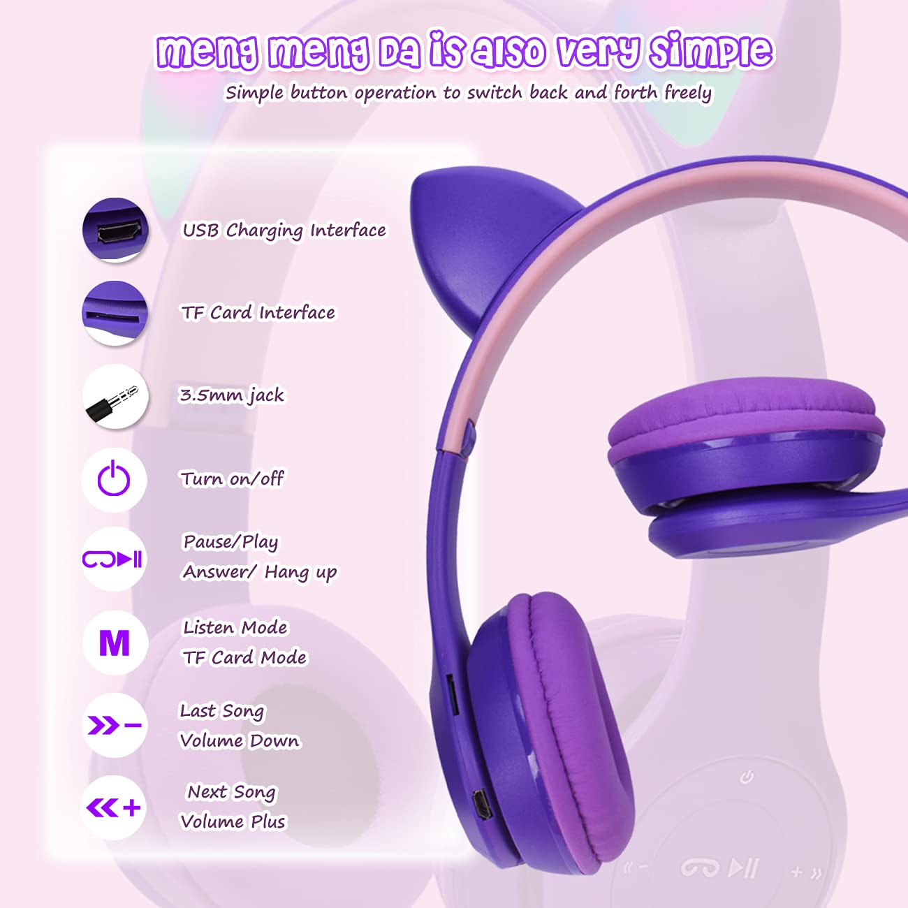 * 【独特の猫耳デザイン】かわいい猫耳にはLEDランプがついており、ヘッドホンを使うと他の子どもたちの目を引きやすい。(有線状態ではLEDランプは動作しない)