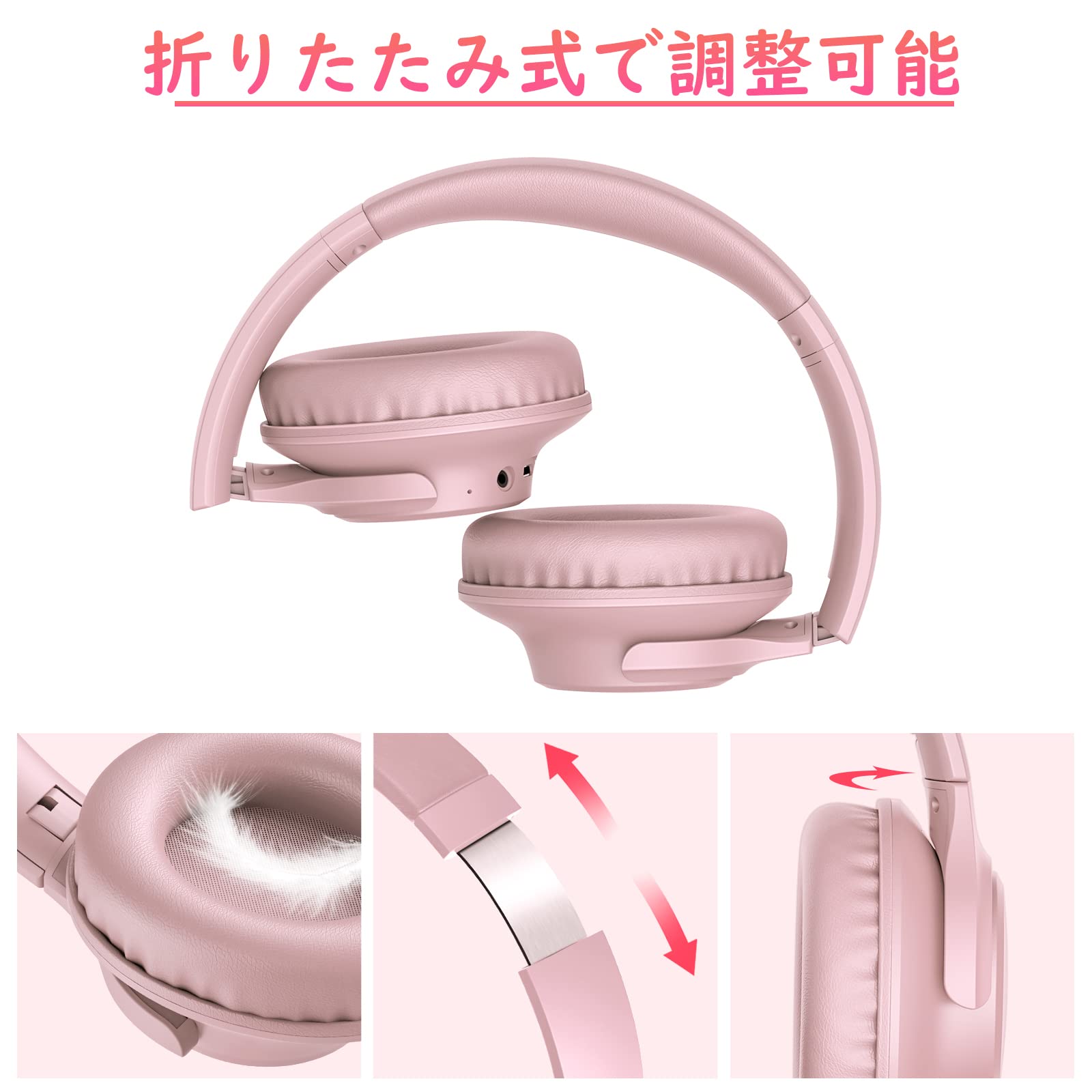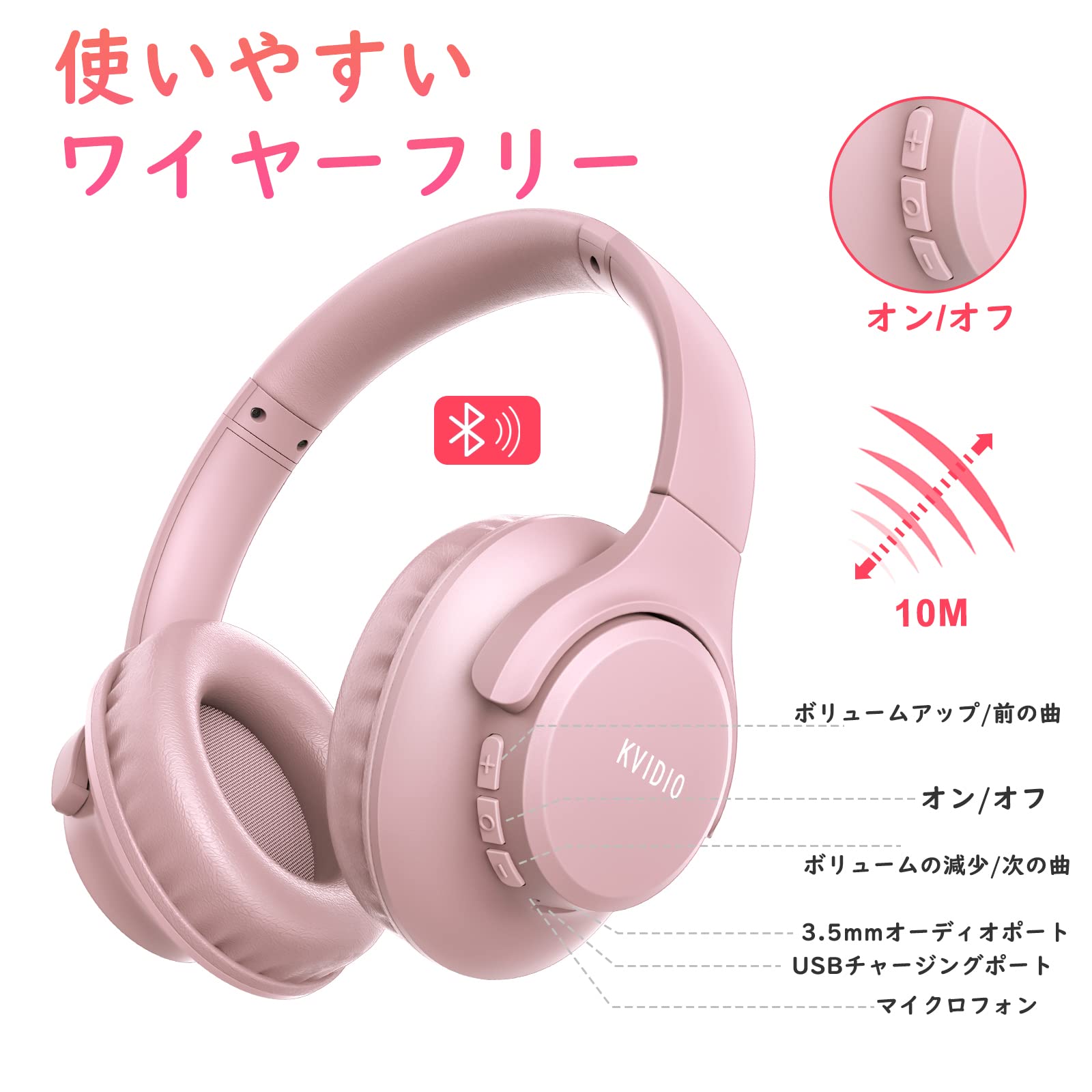 ワイヤレス ヘッドホン KVIDIO Bluetooth 5.4 55時間再生 40mm HD ドライバーユニット オーバーイヤーヘッドホン マイク内蔵 ヘッドホン 有線 無線 両用 遮音 密閉型 ハンズフリー通話可能 ブルートゥース ヘッドフォン ブラック (ピンク)