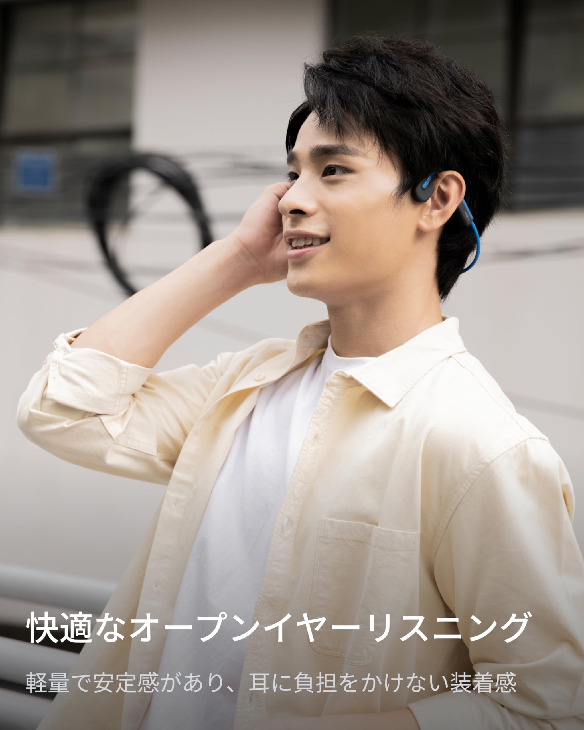 * 第7代骨伝導テクノロジー:防水規格が一層向上し、音漏れが著しく低減しています。わずか29gの軽量デザインで、快適な使用感としっかりとしたフィット感を体験できます。耳を開けたまま、周囲の状況に気を配りながら、ランニングやワークアウトを安全かつ心地よく楽しめます。