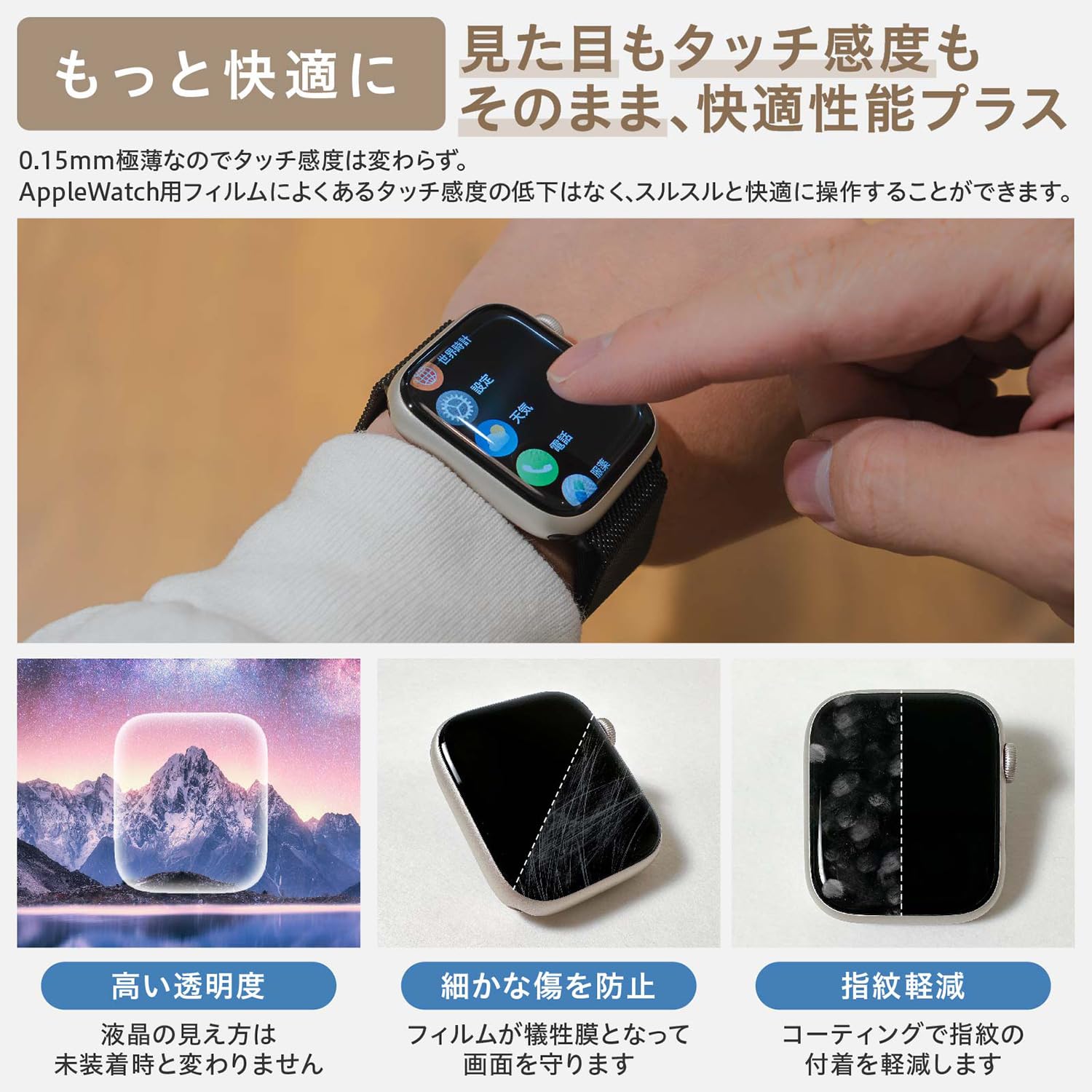 * ▶▶▶【タッチ感度良好】:0.15mm極薄なのでタッチ感度は変わらず。AppleWatch用フィルムによくあるタッチ感度の低下はなく、スルスルと快適に操作することができます。また、フィルムには傷を自然修復する機能があります。細かな擦り傷は約24時間で自然に消え、綺麗な画面を保てます。※すべての傷が消えるわけではありません。※メーカーに関わらず、タッチ感度重視のTPUフィルムは定期的に交換することを前提とした商品です。