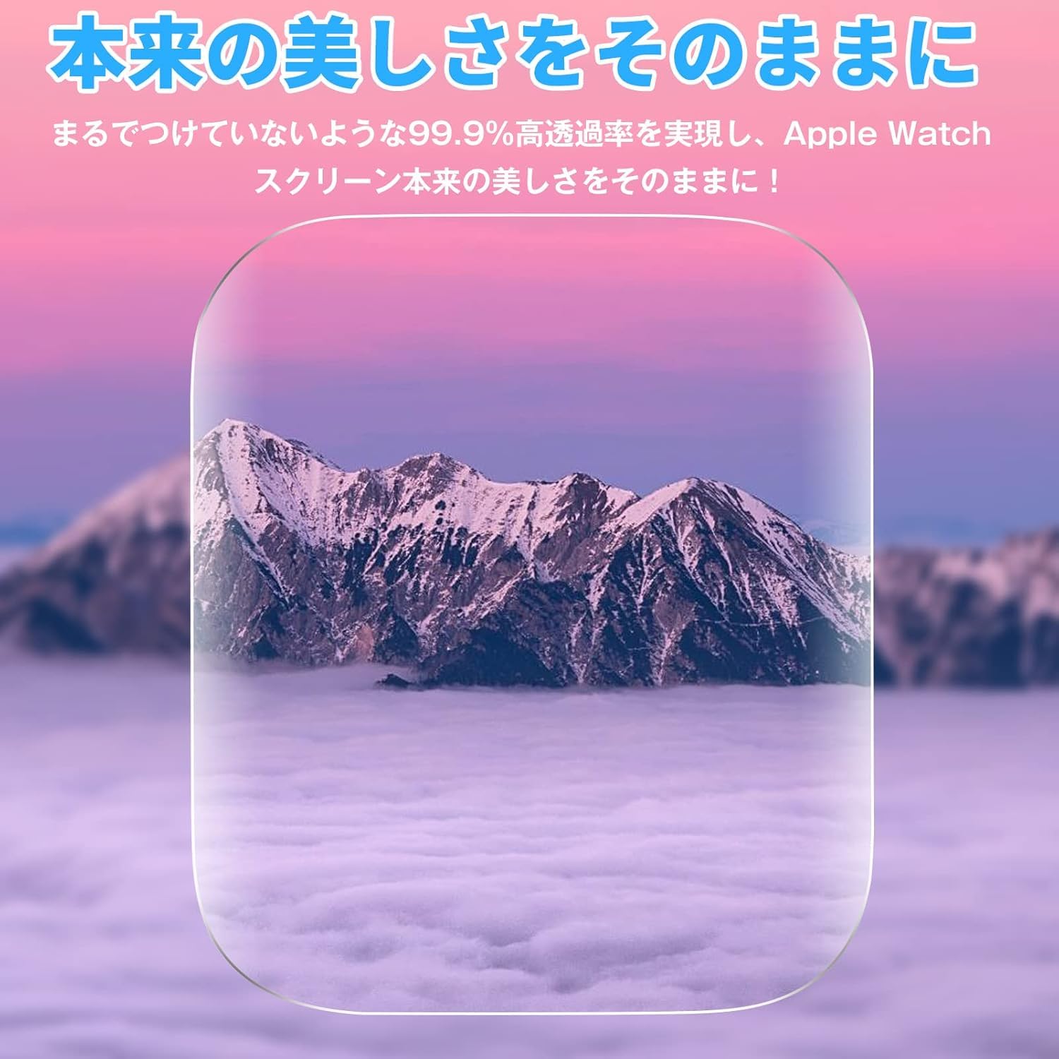 * 【装着感はゼロ・99.9%高透過率】99.9%の高透過率を実現する極薄PET素材を採用しておりますため、卓越した透明度を実現し、Apple Watchの画面の精細さを一切損なうことなく、本来の美しさを忠実に再現いたします。さらに、高品質な素材を使用しているため、フィルム装着時の違和感がなく、タッチ感度および操作の応答性にも優れております。高い透明感により、Apple Watchの美しい画面表現を最大限に引き出すとともに、本体とのシームレスな一体化を実現し、優れた使用感をご提供いたします。どうぞご期待ください。