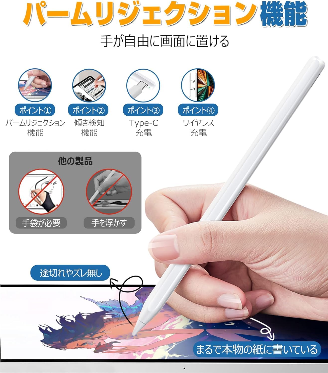 【アップグレード版 ワイヤレス充電タッチペン】Ciscle iPad専用タッチペン アップルペンシル Type-C 磁気吸着充電 スタイラスペン apple pencil交換専用ペン 2018-2025iPad/Air/mini/Pro対応 磁気吸着 傾き感知 誤作動防止 バッテリー残量表示 急速充電 超高感度 極細 自動スリップ 途切れなし 遅延なし 軽量 替え芯3枚付き (ホワイト)