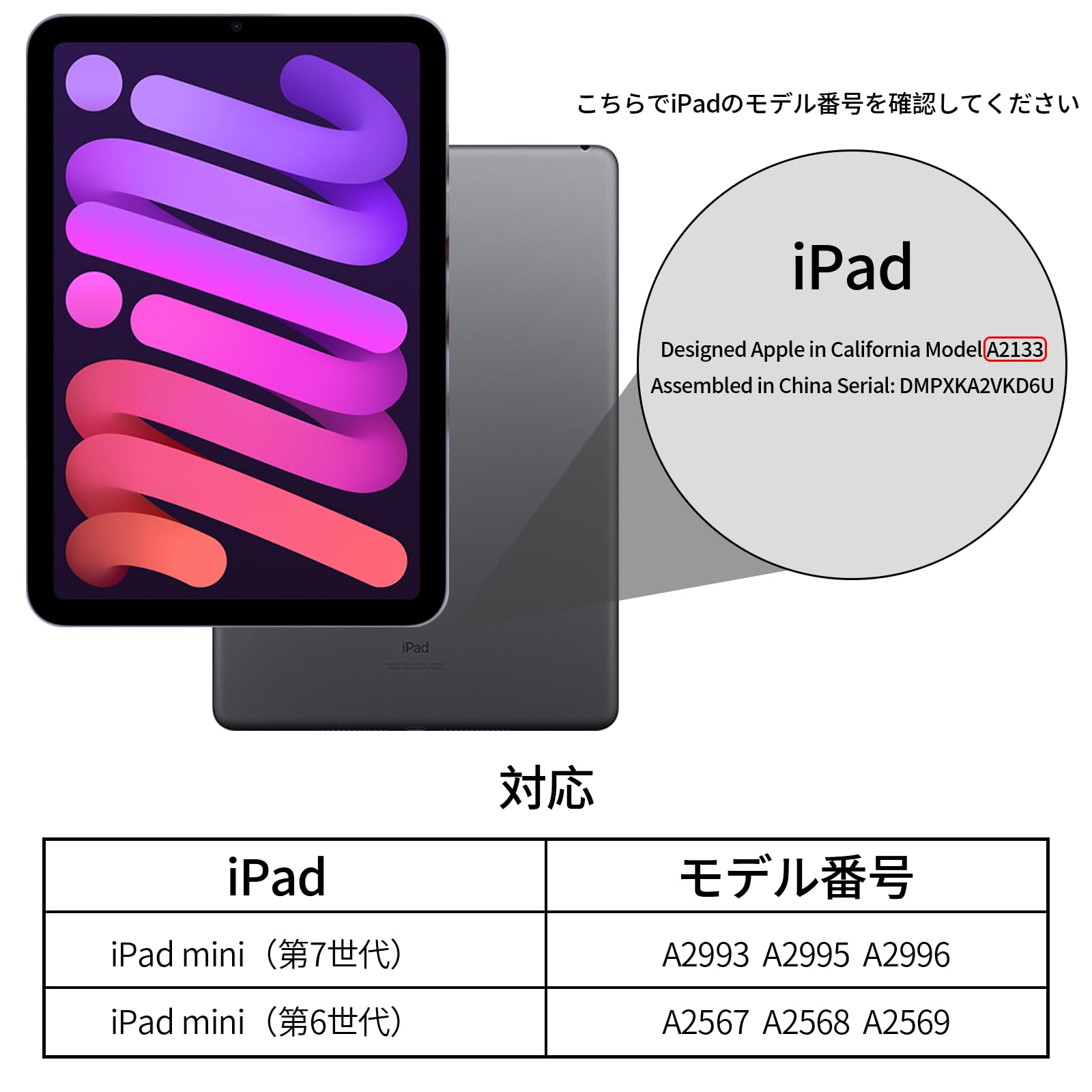 * 「対応機種」iPad mini 第7世代 (A17 Pro) 8.3インチ 2024 (A2993、A2995、A2996)、iPad mini 第6世代 8.3インチ 2021 (A2567、A2568、A2569)のみ対応です。他のどの対応iPadモデルにも対応しておりません。ご購入前にiPad背面のモデル番号ご確認いただけますようお願い申し上げます。
