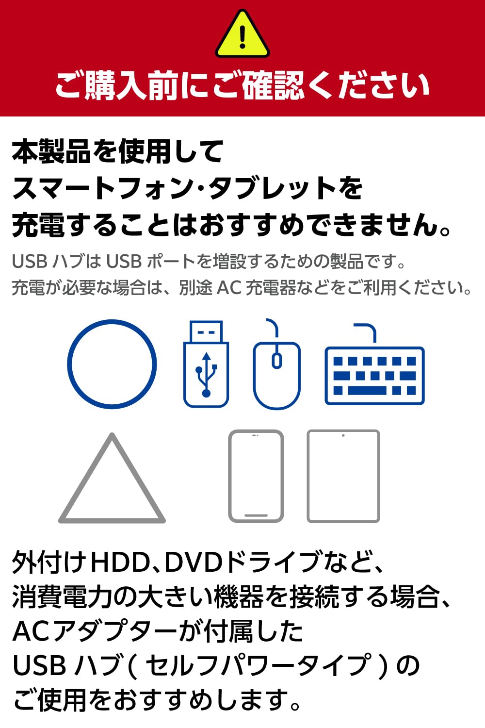 * 本製品はUSBポートを増設するための製品です。本製品を使用してスマートフォン・タブレットを充電することはおすすめできません。