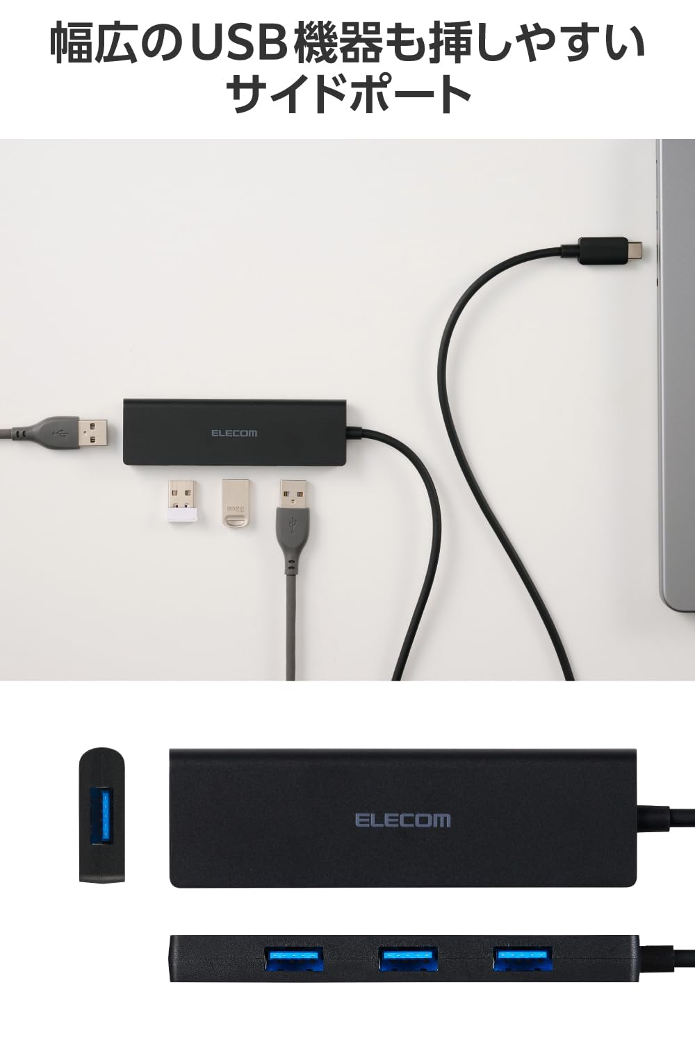 * USB-Aポートを増やしてデスクまわりをすっきり。4つのUSB-Aポートを搭載した、USB Type-C(TM)接続のUSBハブです。USB 5Gbps(USB3.2(Gen1))で高速データ転送が可能です。60cmのロングケーブルです