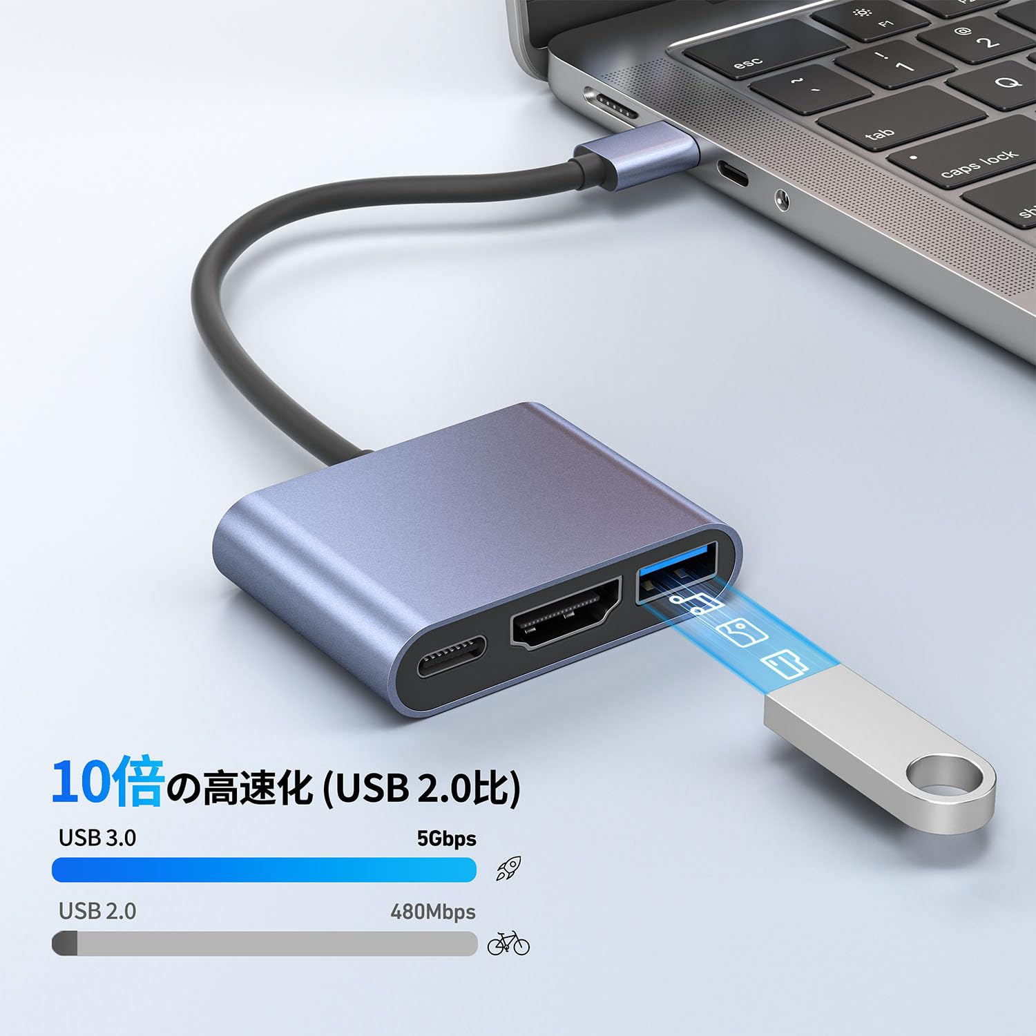* 【3-in-1 マルチポートで効率化】HDMI・USB3.0・100W PD充電の3機能を1台に集約。ノートPCのType-Cポート1つで、4Kモニター接続・高速データ転送・フル速充電を同時実現。軽量アルミ合金ボディで発熱抑制と携帯性を両立。