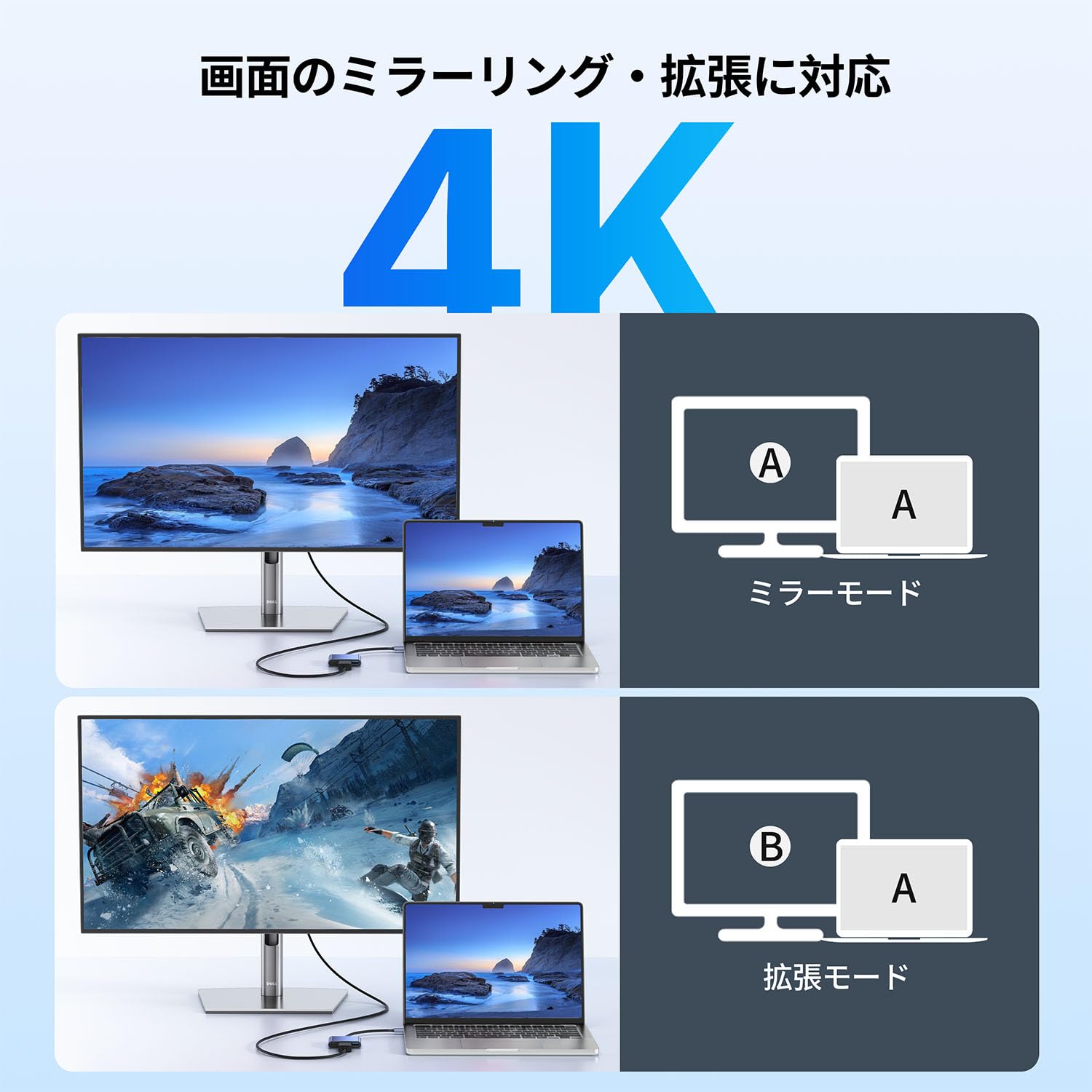 * 【劇的な4K映像体験】HDMIポートで4K@30Hz超高清画質を出力(1080p/2Kも対応)。「拡張モード」「複製モード」切替可能で、作業画面を2倍に拡大。会議・動画編集・ゲームプレイを大画面で没入。