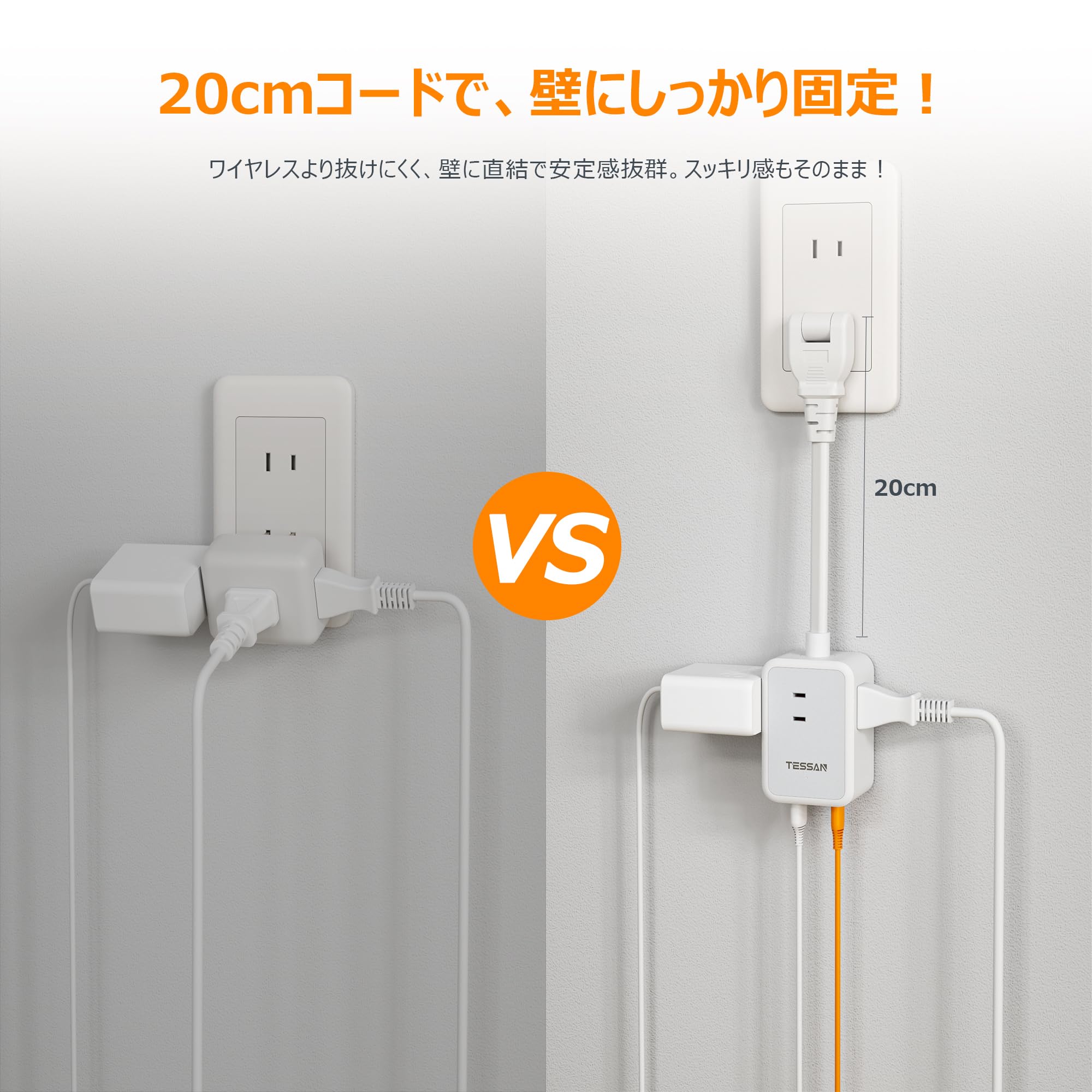 * 【延長コード 20cmの優勢】こ無線の壁コンセントは、2ピンの差し込み部分だけに頼っているため、複数の機器を接続すると重みで抜けやすくなります。しかし、この20cmの延長コードは、コードの重みが壁側にかかるため、重心が安定。複数の機器を接続しても抜けにくく、安心して使えます!