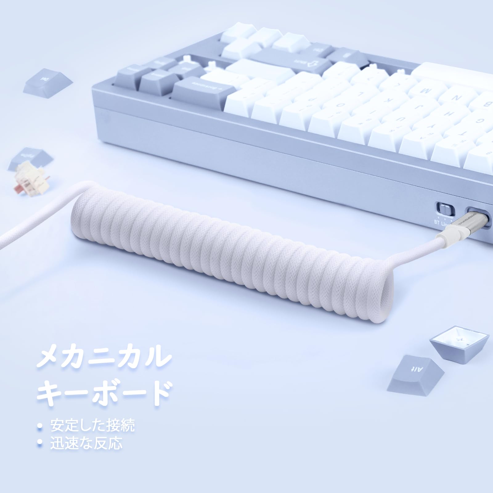 【高速8000Hz対応】ATTACK SHARK C01Pro ゲーミングキーボード用コイルケーブル USB Type-C接続 超低遅延 ナイロン編組耐久 スマホ/タブレット充電対応 1.5m伸長 巻き戻し防止設計 信号安定化技術 パソコン/マック/Android対応 eスポーツプロ仕様 携帯性 充電データ転送両用(ホワイト)