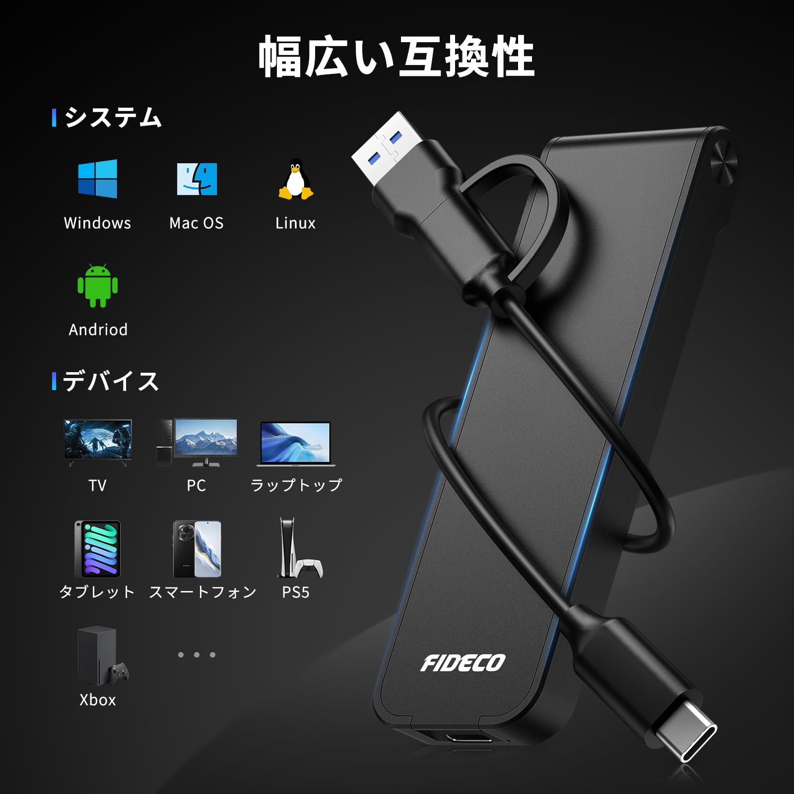 * 【互換性のあるシステム】FIDECO M.2- USBアダプターはWindows、Mac OS、およびLinuxと広く互換性があります。したがって、WindowsユーザーであろうとAppleユーザーであろうと、NVMEアダプターはそれを作成できます。