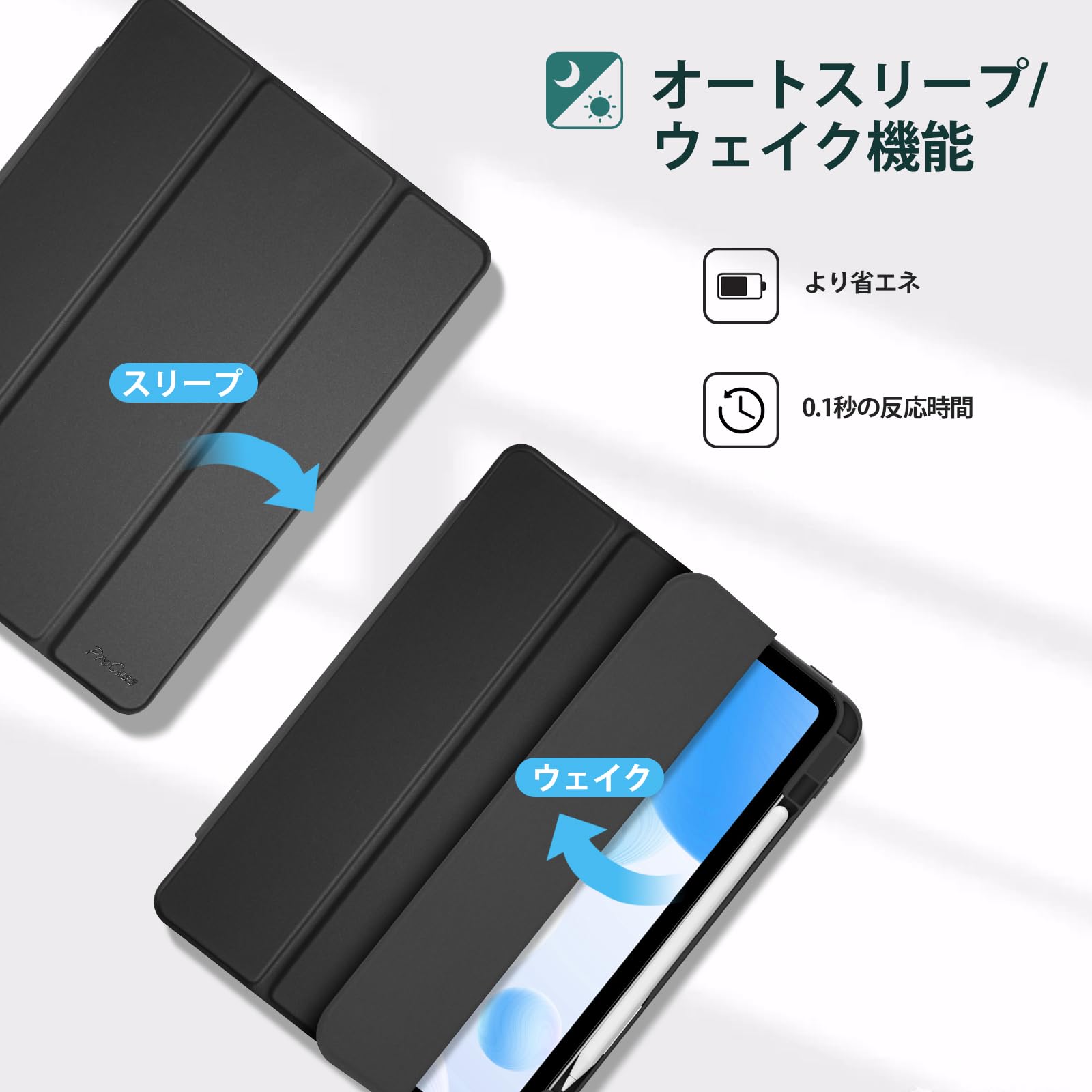 * 【オートスリープ/ウェイク機能】マグネット内蔵でカバーを開け閉めするだけで、デバイスを起動またはスリープモードに切り替えることが可能です。