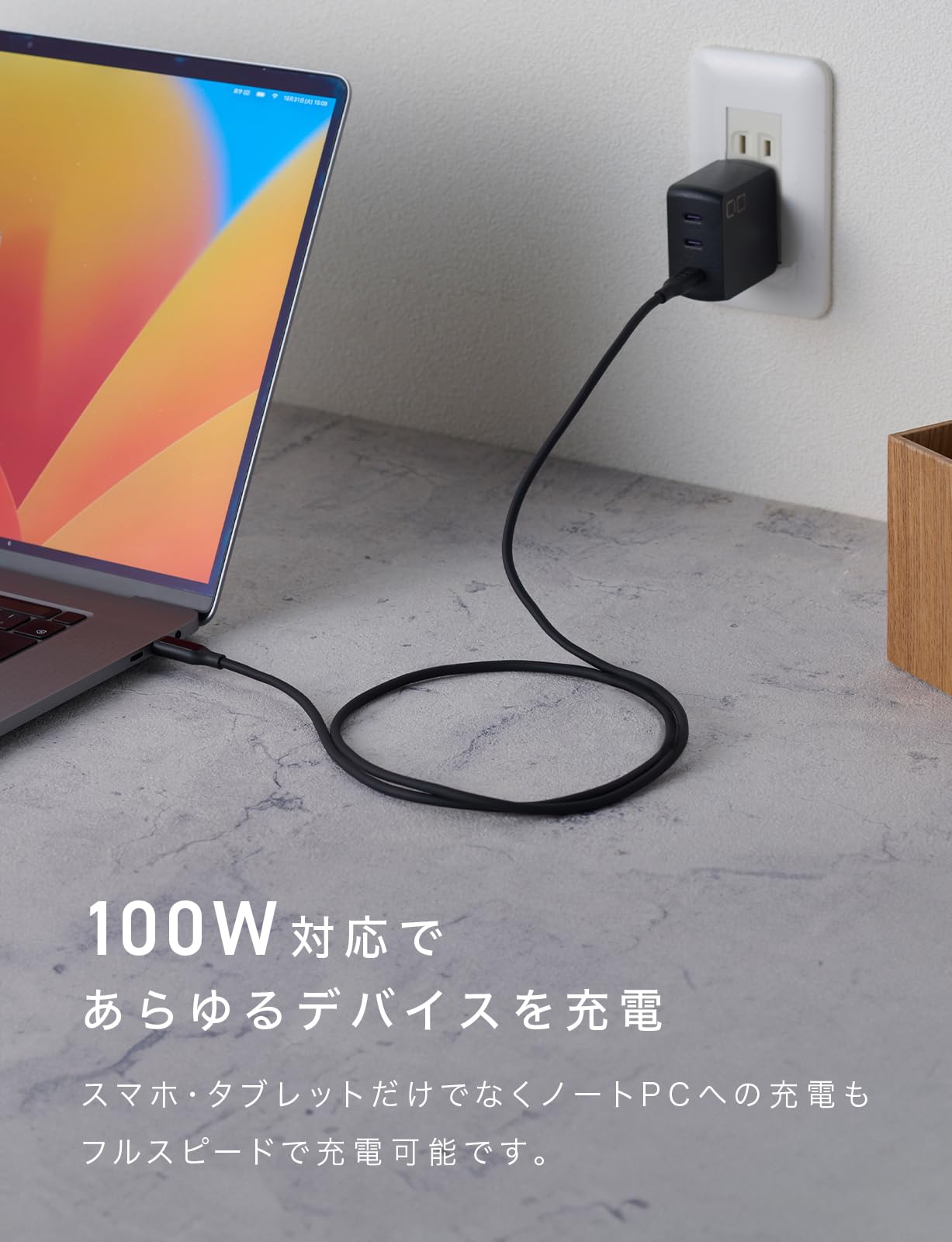 * 【対応機種】iPhone15 / iPhone15 Pro / Pro Max / Plus、SONY XperiaやSamsung Galaxyなどの各種Android端末はもちろん、100W充電に対応しているのでUSB-C対応のiPad ProやiPad Air / mini、Macbook ProやSurface、LenovoなどのノートPC/Laptop、Switchなどあらゆるデバイスに対応。