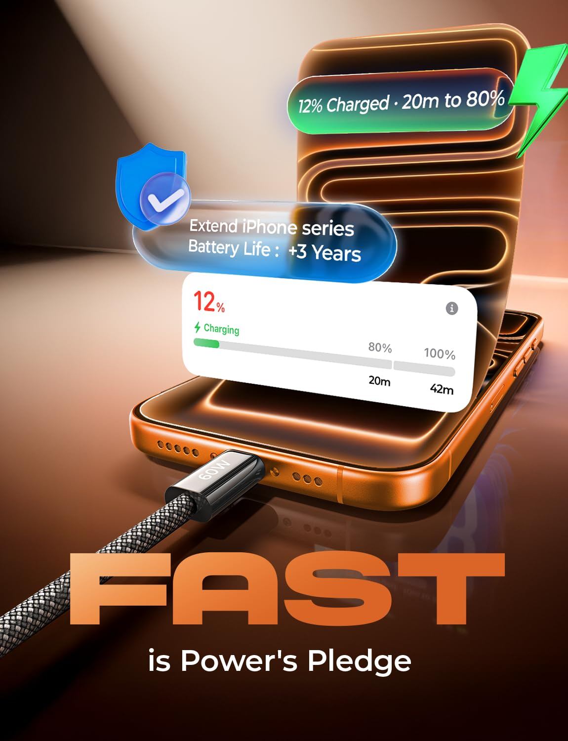 * 【60Wターボ高速充電】このiPhone 17充電コードは、30W/45W/60WなどのUSB-C電源供給アダプターで、最大60W (20V/3A)のPD3.0/QC3.0/QC4.0高速充電に対応しています。 3.1Aバージョンの2.2倍速く、USB C Phoneを35分以内に0%から80%まで充電し、iPad Pro 64%を35分以内、Macbook Air 50%を35分以内に充電。データ転送速度は最大480Mbps(毎分1200曲の同期)。Samsung、Tablt、iPad Air Mini Pro、MacBookなどと互換性があります。