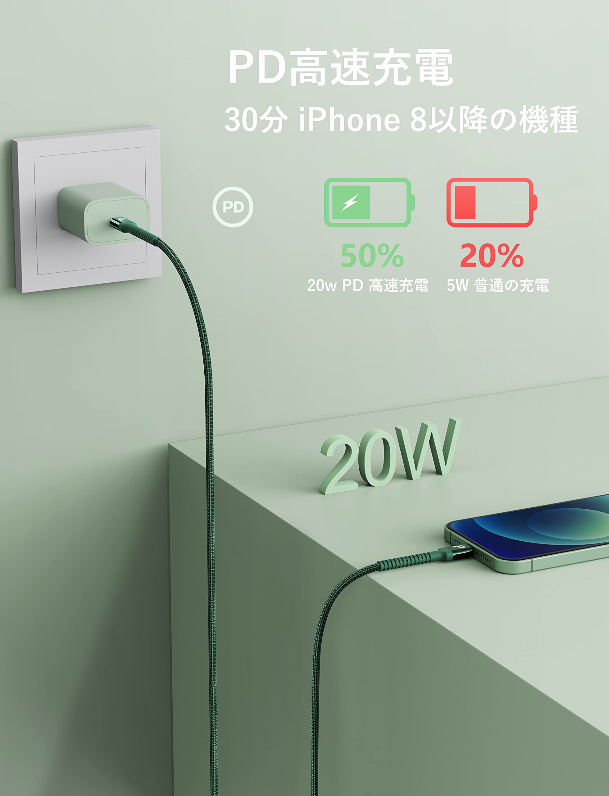 * 【2M 2本セット PD急速充電】PD対応のUSB-C Appleの新しいバージョンC94端子を使用し(より耐久性が高い)、 USB-C ポート内蔵のPD対応ACアダプタ(PD18W、20W、30W、 45W、 61W、 65Wまたは 87W USB タイプC パワーアダプターおよびPD 充電器)と組み合わされているため,と一緒に使用することで、わずか30分で50%まで充電することができます。