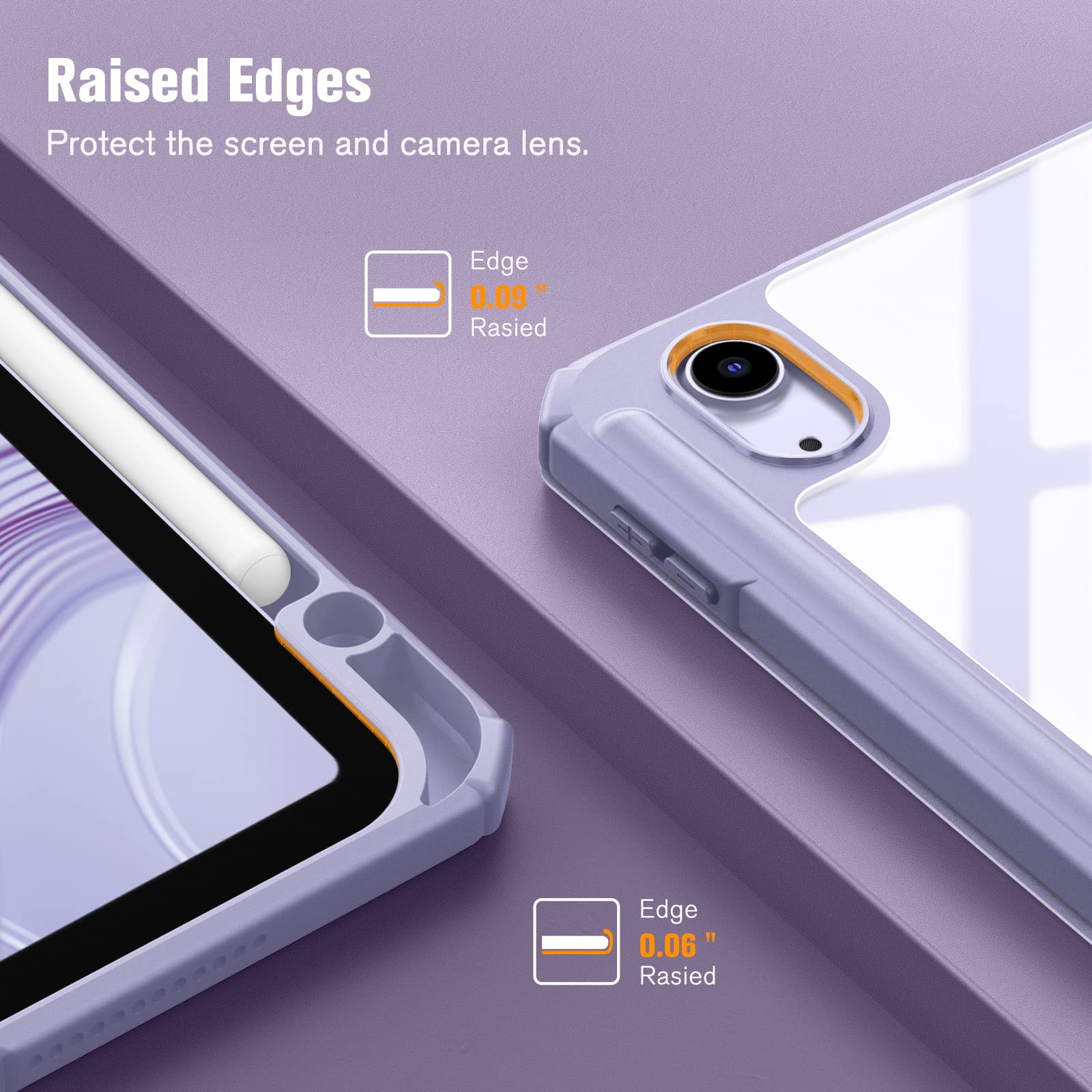 Fintie iPad Air 11インチ ケース M3 (2025 第7世代) / M2 (2024 第6世代) / Air 5/4 ケース 2022/2020 10.9 インチ 透明バックカバー Apple Pencil 収納可能 ワイヤレス充電対応 三つ折スタンド スリープ機能 軽量 薄型 傷つけ防止 PU合成レザー TPU(柄 X マーブルパープル)