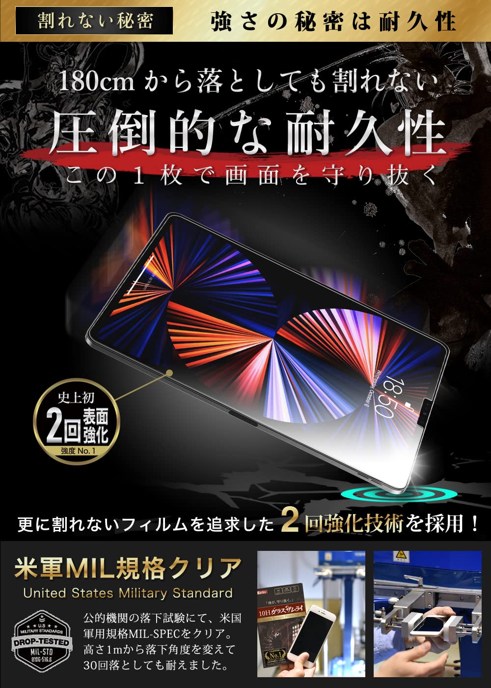* 【 ナ イ フ で も 傷 つ か な い ~ 硬 度 1 0 H 】 表面硬度10H(鉛筆硬度試験)。製造方法と素材を徹底して追求した結果、現在市場では最も硬い10Hの表面硬度を実現。カッターやナイフでも傷つけられない硬度9Hで守り抜く。
