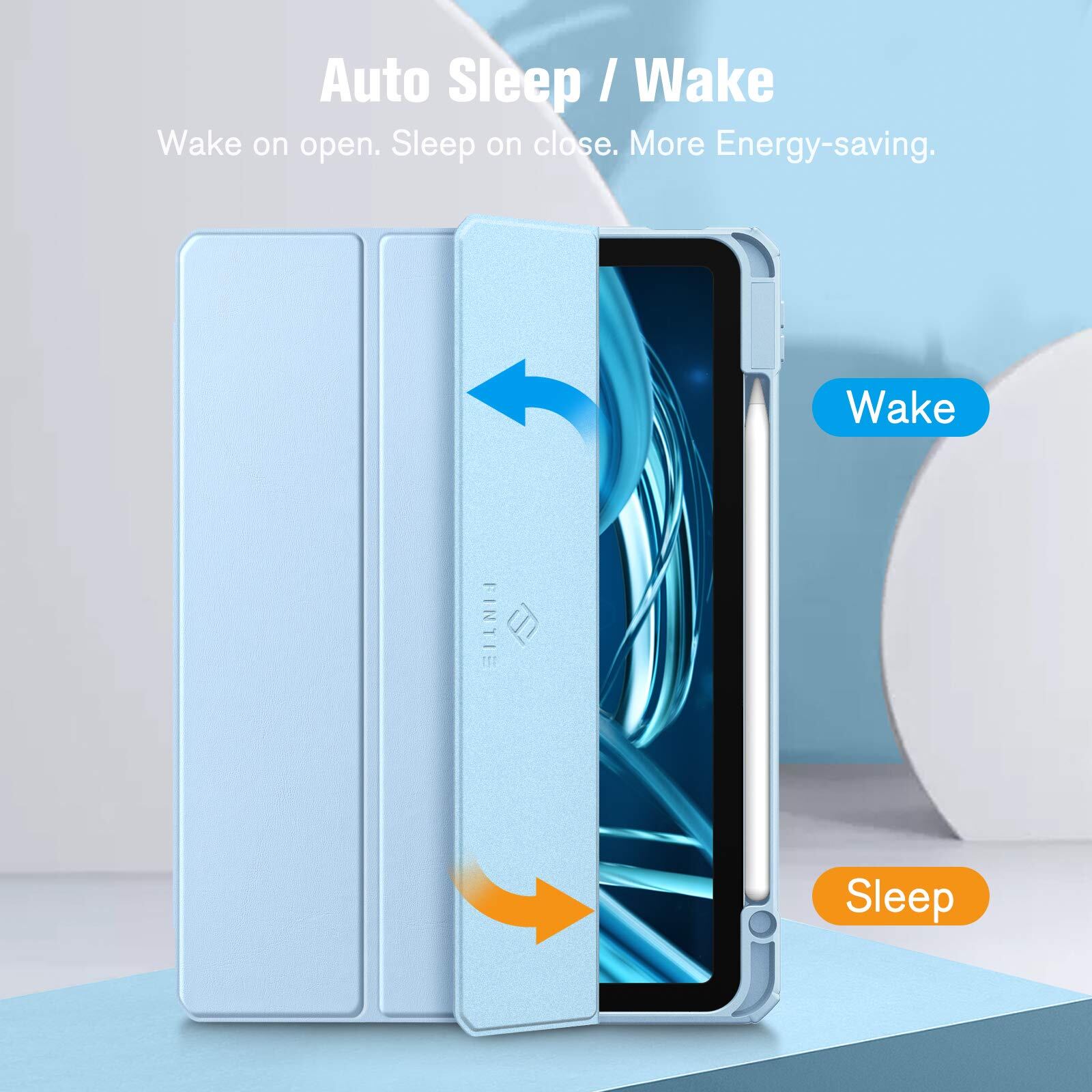Fintie iPad Air 11インチ ケース M3 (2025 第7世代) / M2 (2024 第6世代) / Air 5/4 ケース 2022/2020 10.9 インチ 透明バックカバー Apple Pencil 収納可能 ワイヤレス充電対応 三つ折スタンド スリープ機能 軽量 薄型 傷つけ防止 PU合成レザー TPU(スカイブルー)