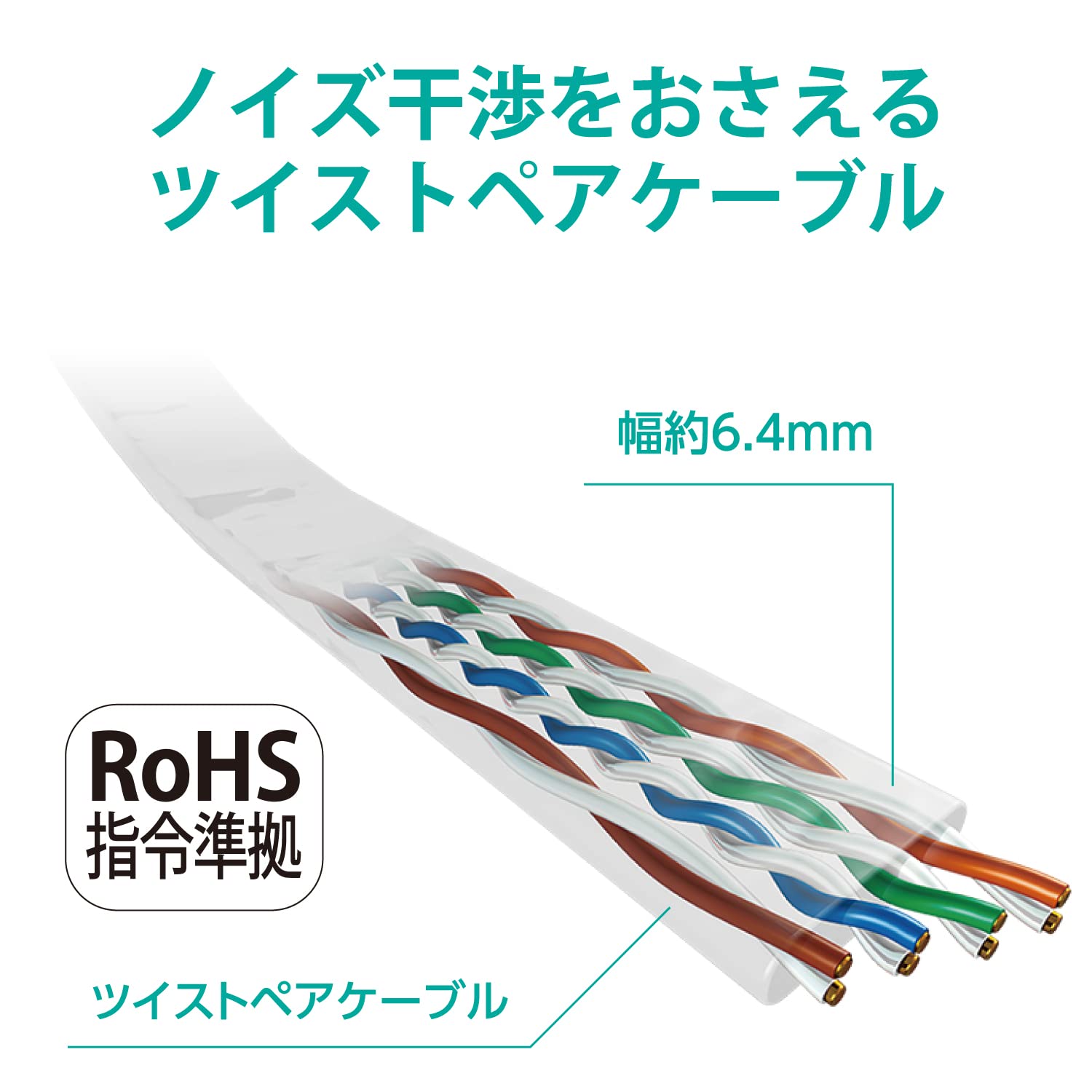 * Cat6の2倍である500MHzまでの高周波帯域まで対応しており、ノイズ干渉にも強く、高速で安定したネットワーク環境を実現します。