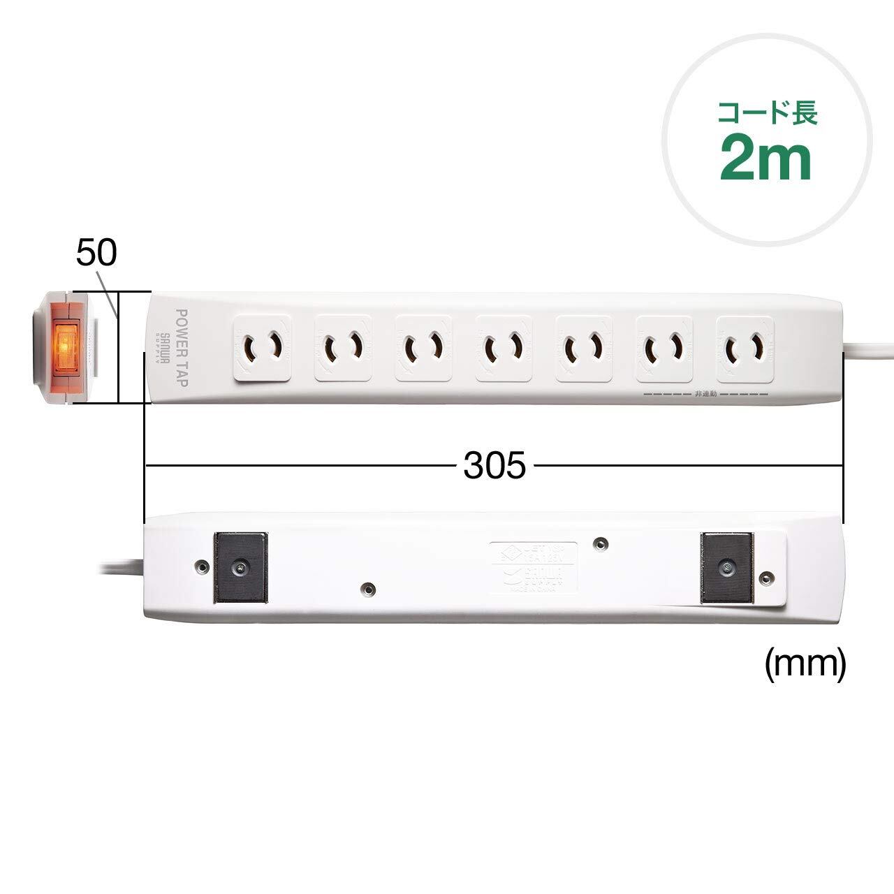 サンワダイレクト 電源タップ 7個口 2m 雷ガード マグネット付き 一括スイッチ 抜け止めコンセント 配線しやすい180°スイングプラグ ホワイト <PSE取得> 700-TAP033