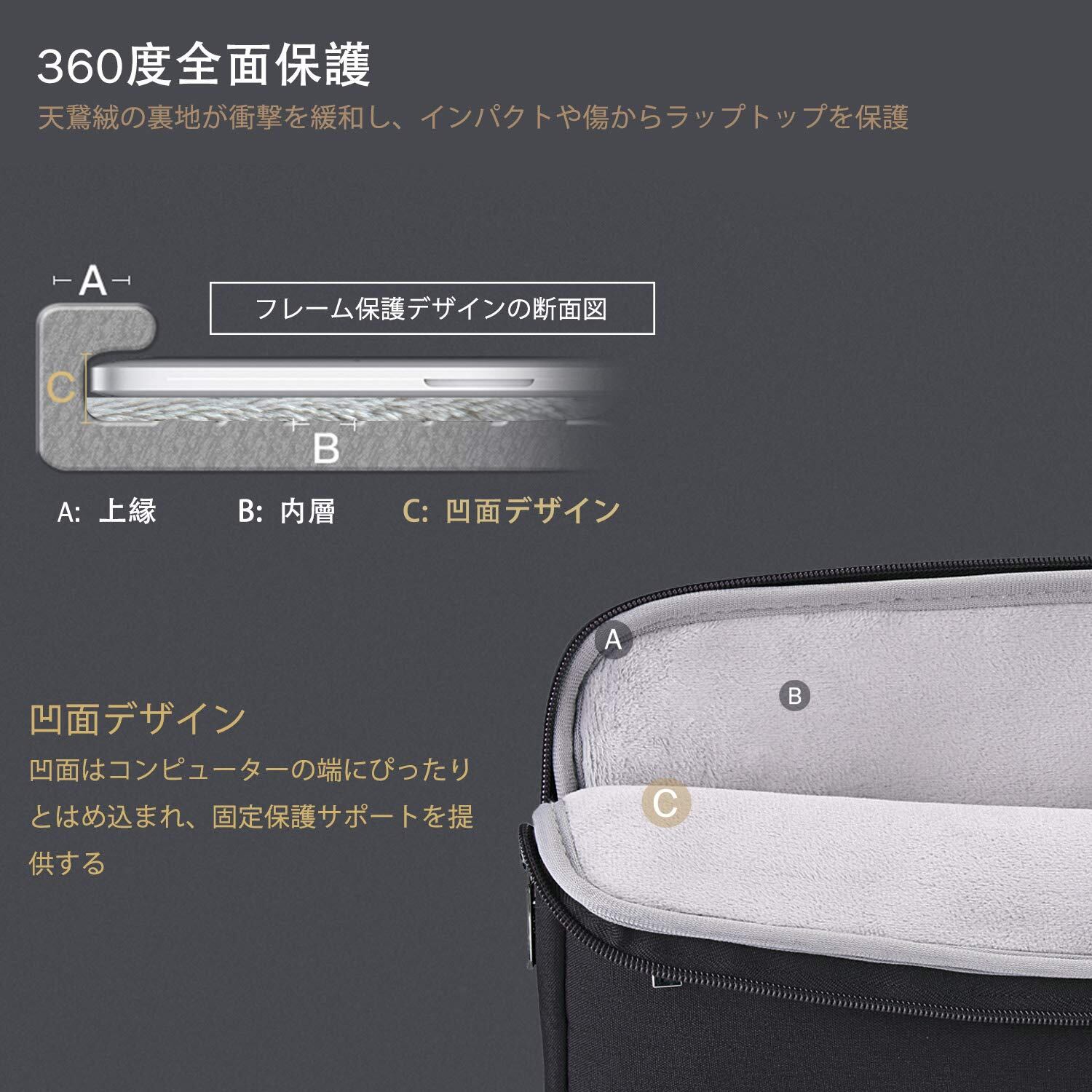 * 【全面保護】外部からの衝撃を吸収する厚みを保ちながら、体積を少なくして軽量化を実現しています。パソコンケース表面は撥水性に優れ、耐久性と高級感のあるオックスフォード布を採用しております。pcケースの内部が手触りの柔らかい天鵞絨で覆われていて、厚いクッション材が入っております。不意な落下や衝撃を吸収し、ラップトップが傷つかないように保護します。