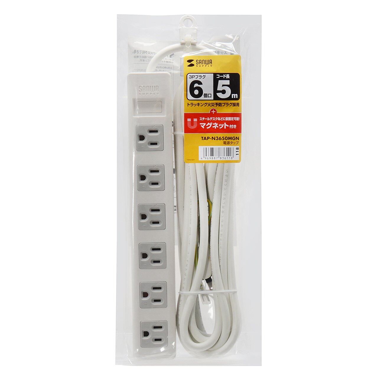 サンワサプライ 電源タップ マグネット付き 3P・6個口 5m TAP-N3650MGN