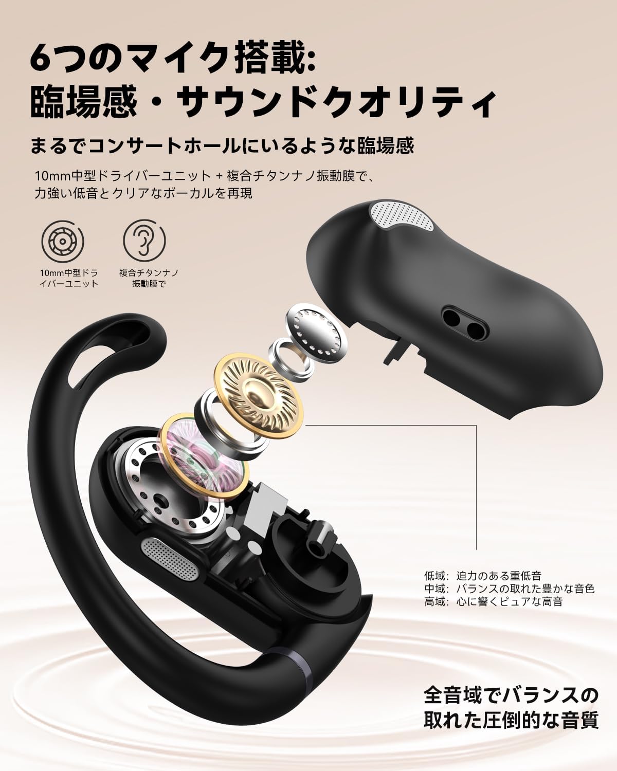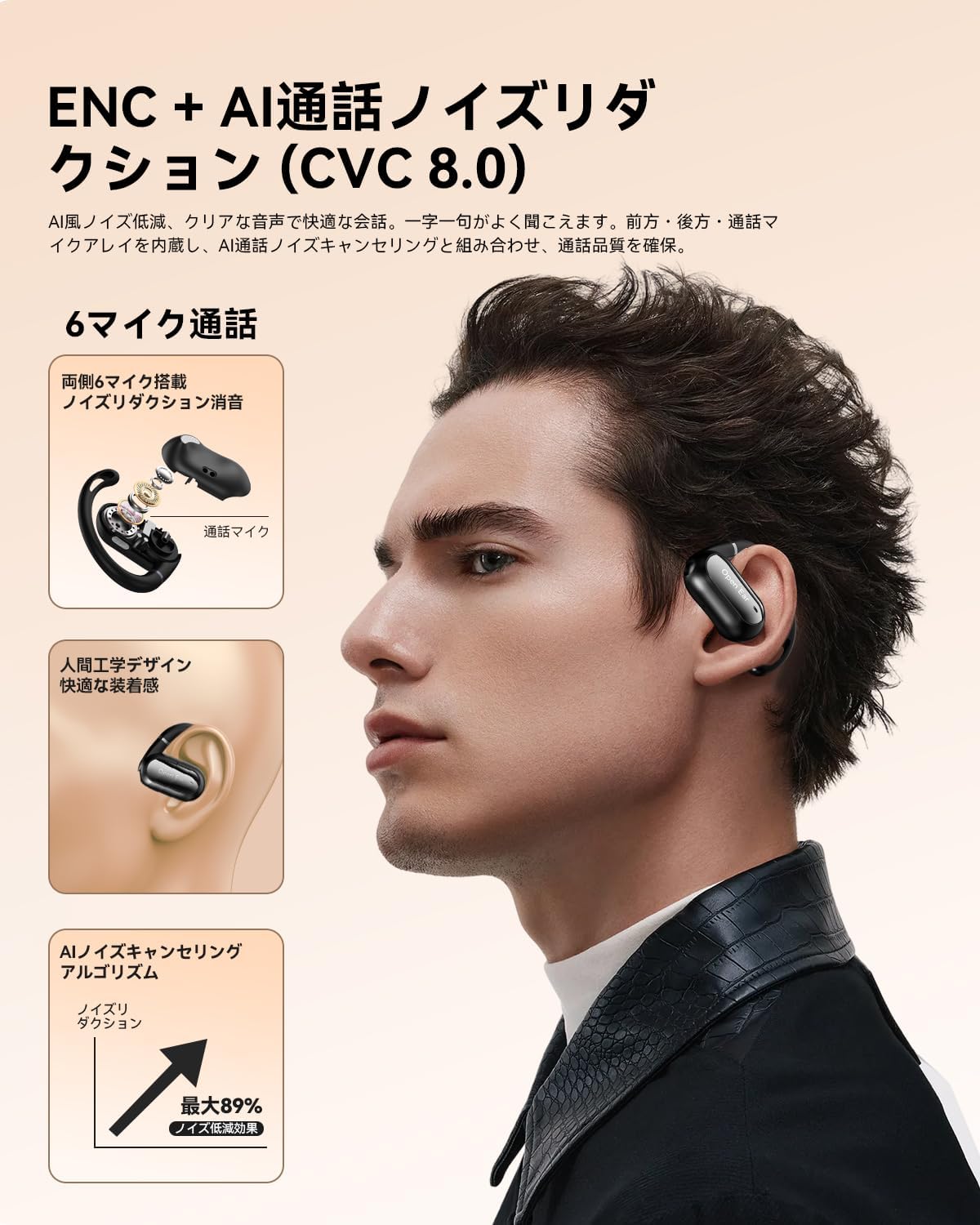 Bluetoothイヤホン ワイヤレスイヤホン 6 つシリコンマイク搭載 AIスマートENC通話 60時間音楽再生2026最新bluetooth 6.0 クリップイヤホン空気伝導耳挟み式オープンイヤー IPX7防水全帯域音質低遅延 ブルートゥースイヤホンWEB会議/運動/ゲーム/テレワーク/通学/通勤/スポーツ/音楽用 iPhone/Android対応