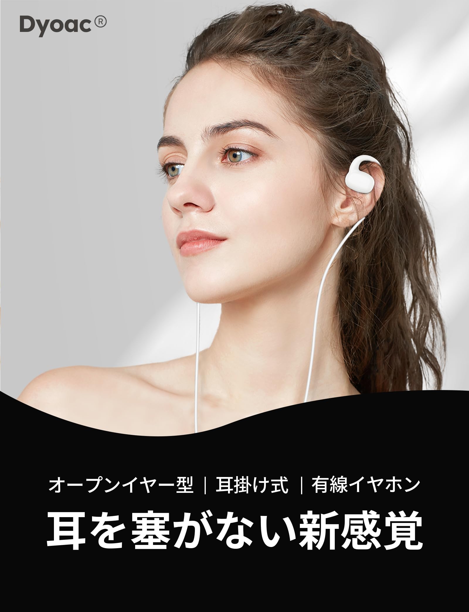 イヤホン 有線 3.5mm タイプC オープンイヤー 有線イヤホン マイク付き 耳を塞がない 骨伝導から進化 ながら聴き クリア通話 耳掛け ゲーミング 空気伝導 軽量 遅延なし 音漏れ防止 オンライン会議 Dyoac (ホワイト, 3.5mmステレオミニ)