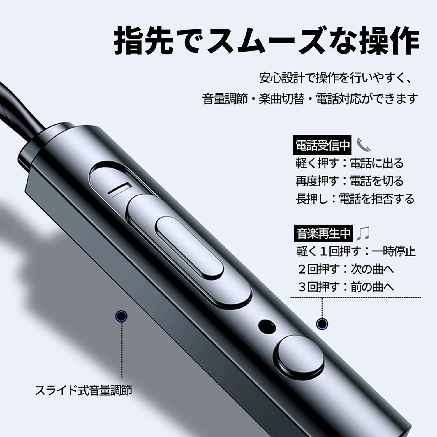 * ※イヤーピース3ペア付き【2024年NEWモデル&高品質通話コントロール】有線イヤフォン内蔵高音質マイクと内部吸音穴が外部ノイズを低減し、通話品質と安定した伝送を確保します。 高音質のスピーカーを内蔵し、騒音を遮る耳の先端は周囲の騒音を排除します。さらに、コントローラーは便利に配置されており、音量をコントロールしたり、曲を追跡したり、音楽の再生、通話。ゲームやスポーツ、通勤時などにも楽しめます。電話や会議、オンライン学習の際にも便利です。そして、万が一、商品に不具合が生じた場合はまたはお客様のご要望を満足できない場合は、お客様からのお問い合わせ内容に応じて代替品交換・返金対応(1度限り)を提供致します。