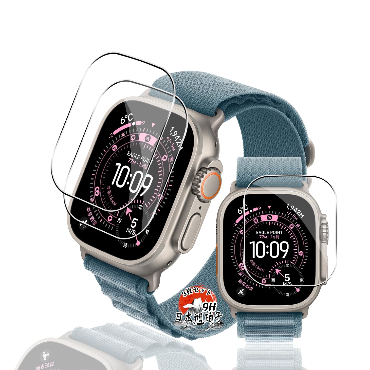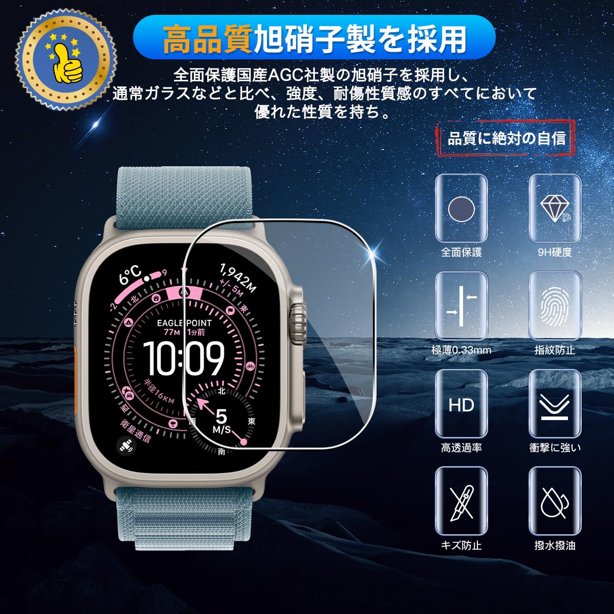 用 Apple Watch Ultra 3 ガラスフィルム フィルム 【3枚セット 国産旭硝子素材】 用 Apple Watch Ultra 3 / Ultra 2 / Ultra 49mm 保護フィルム 高透過率 超薄型 用 アップルウォッチ Ultra 3 49mm 強化ガラスフィルム 耐衝撃 全面保護 飛散防止 自動吸着 気泡なし 簡単貼り付け 用 appleWatchultra3 ガラス