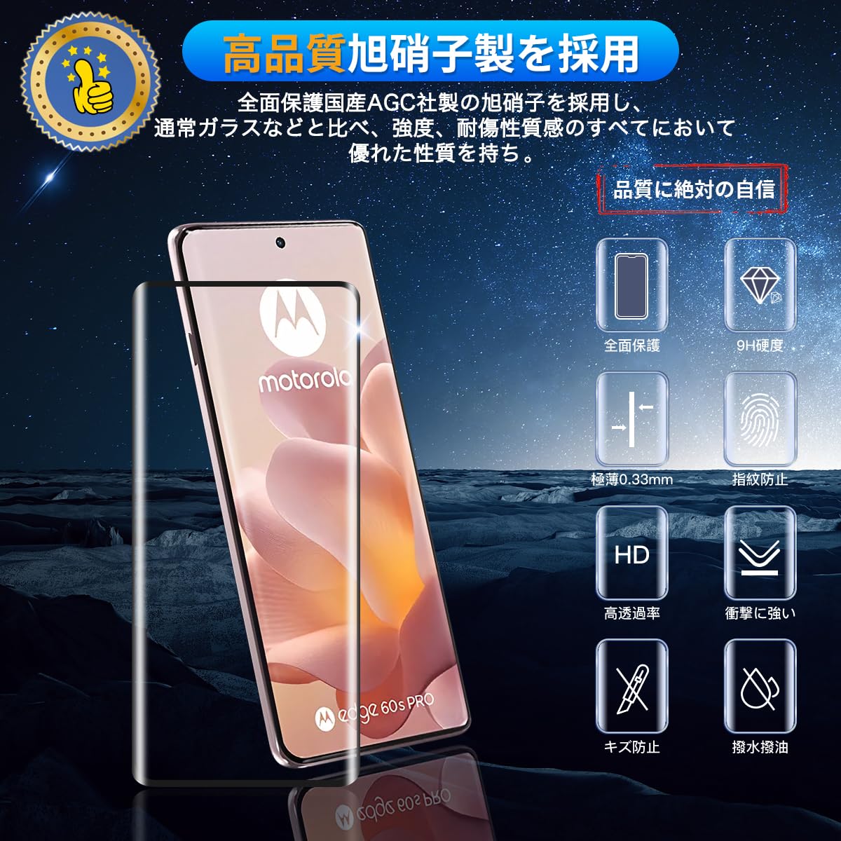 用 Motorola EDGE 60 Pro/moto edge 60s Pro ガラスフィルム 2枚 + カメラ保護 2枚 【国産旭硝子素材】 用 Moto EDGE 60 Pro フィルム 硬度9H 用 モトローラ EDGE 60 Pro 保護フィルム 耐衝撃 用 EDGE 60 Pro 液晶ガラス 全面保護 飛散防止 高透過率 全面吸着 気泡なし 簡単貼り付け ケースに干涉なし