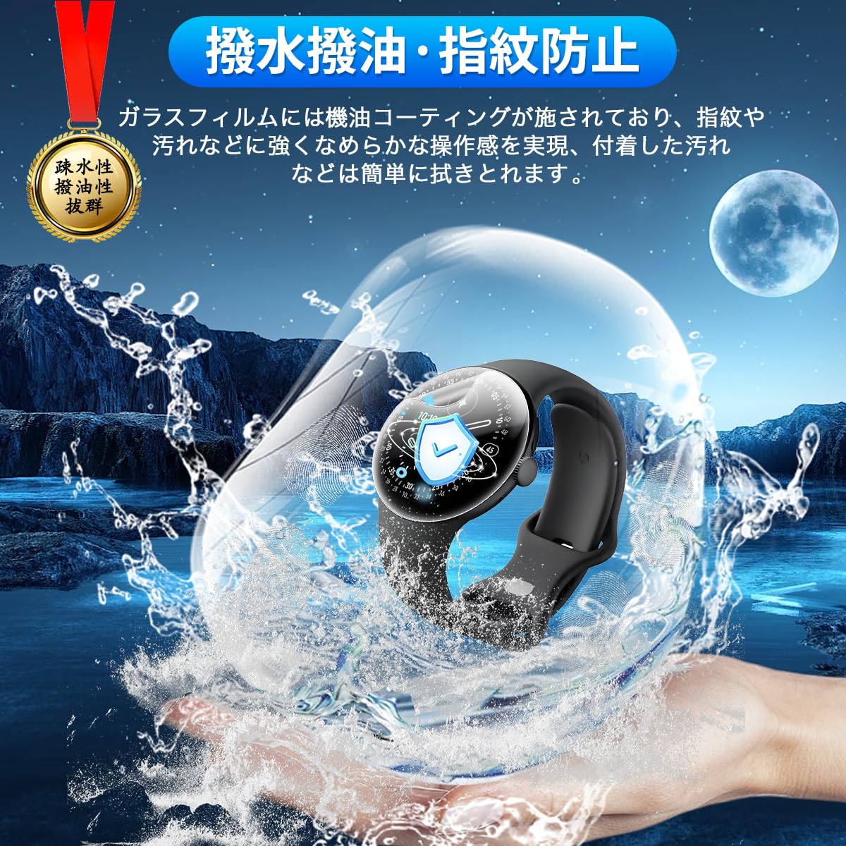 * 【撥水撥油・指紋防止】 対応 グーグルピクセルWatch4 41MM 保護フィルム 採用して AFコーティングにより保護フィルムの表面に撥水撥油防汚機能を付与しており、指紋や汚れの跡が画面に付きにくく、きれいな状態に維持されます。改良されたコーティング加工により、指紋などがつきにくく、画面がなめらかとなり快適な操作することができます。(付着した指紋、水滴、汗、化粧品などは簡単に拭き取れます)